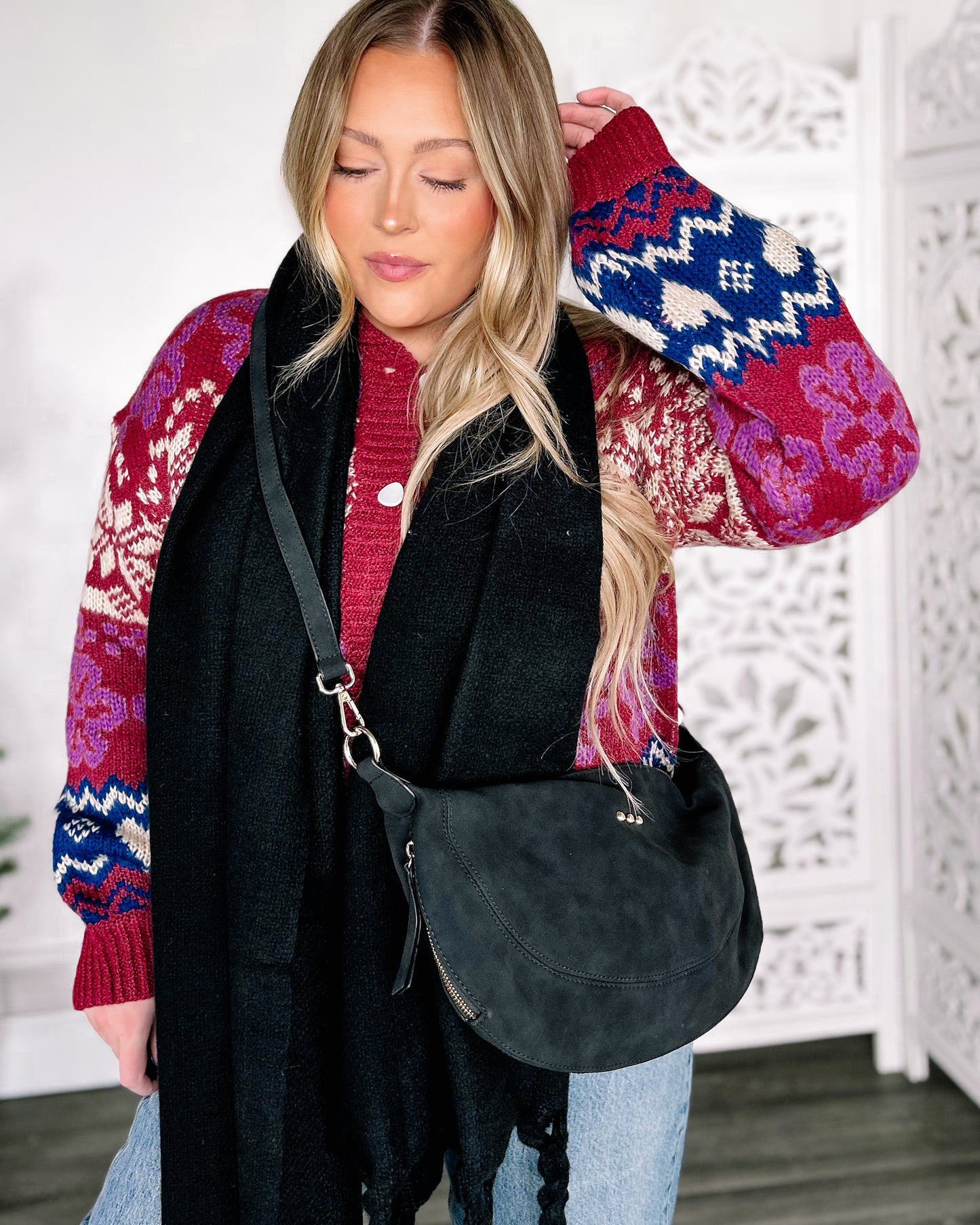 Netty Nubuck Crossbody Bag [black]