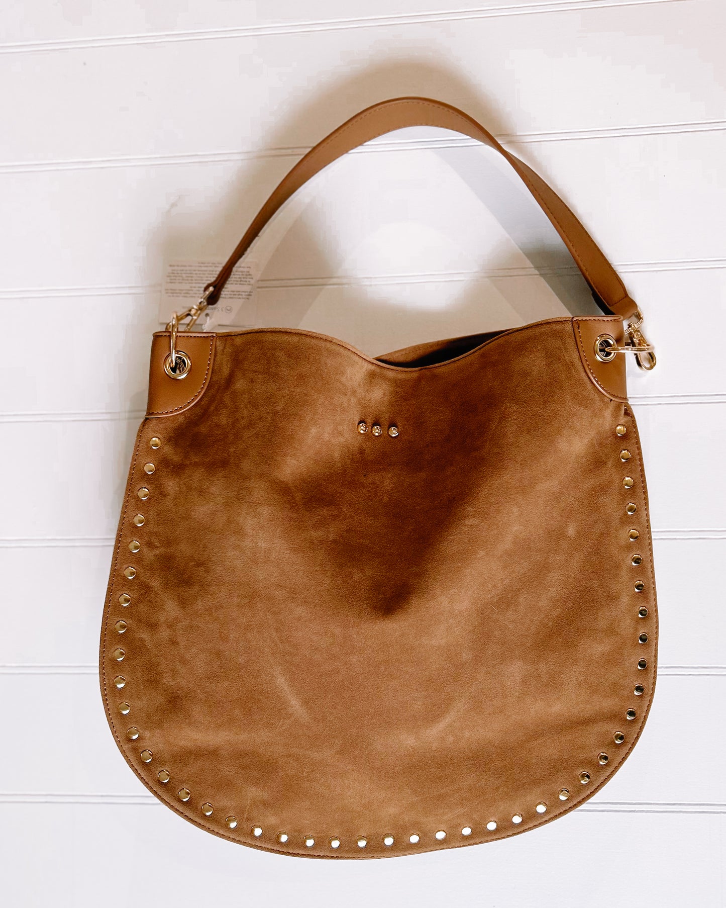 Add Rosalie Rivet Suede Hobo Bag [camel] to the cart