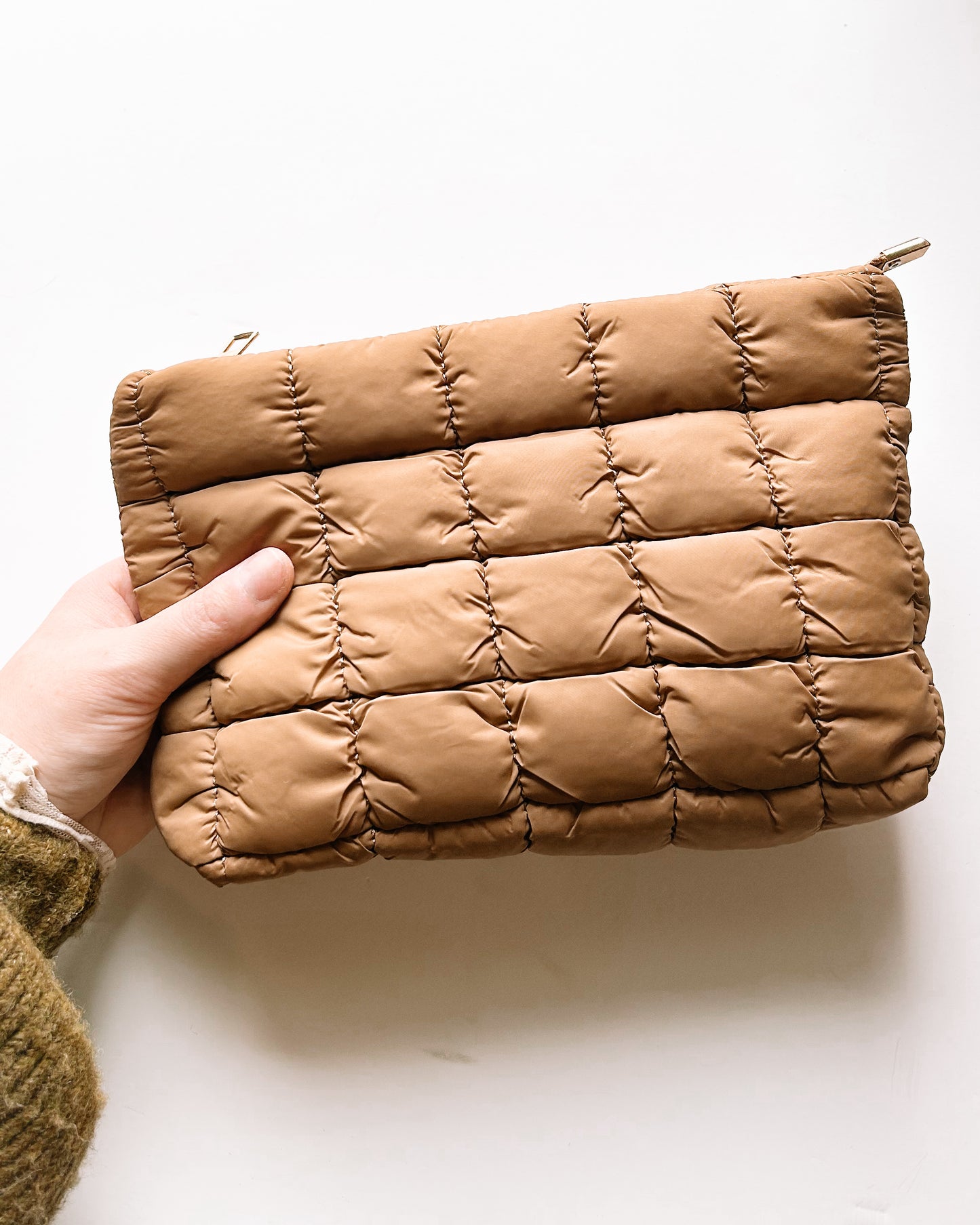 Quilted Puffer Zip Pouch [tan]