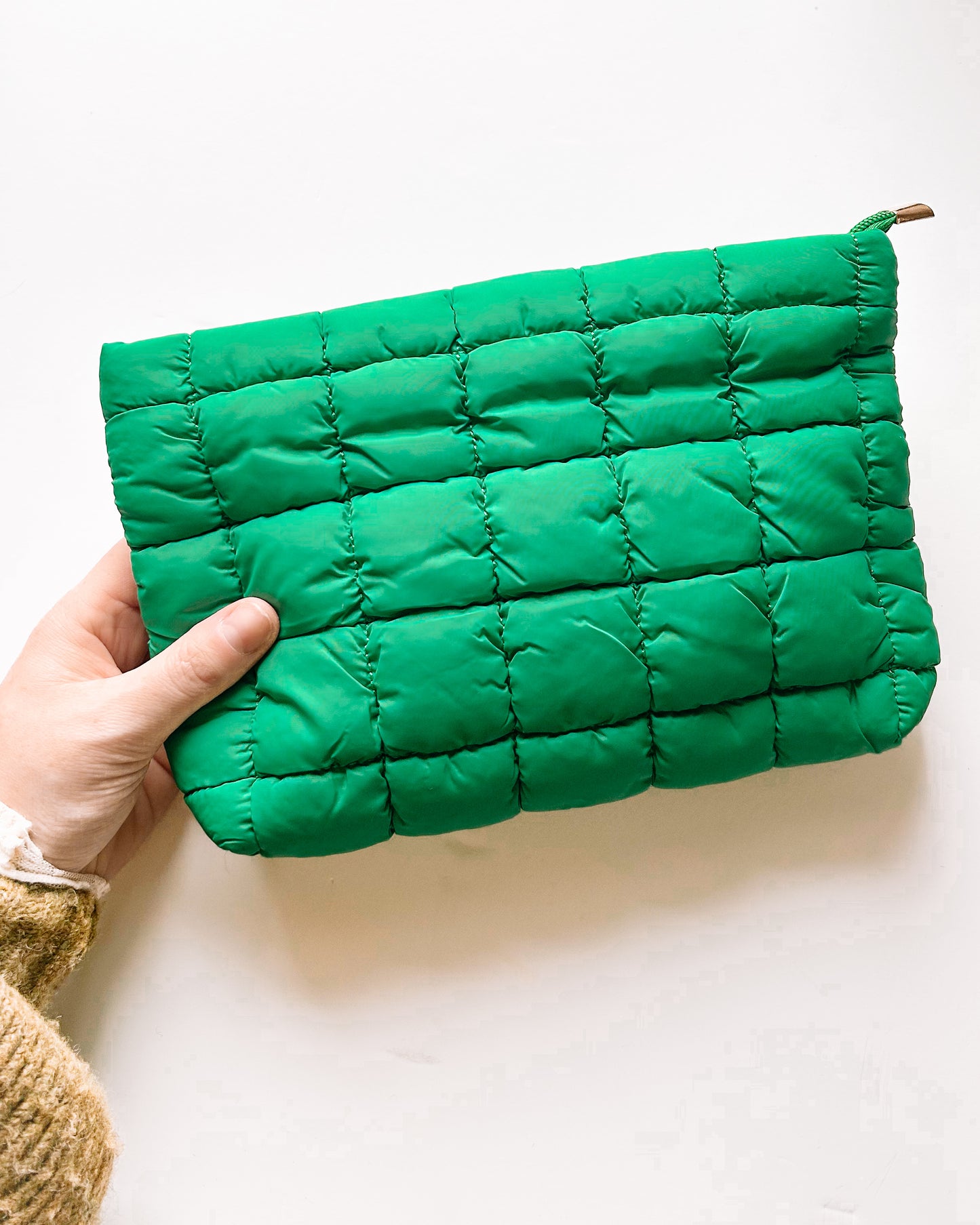Quilted Puffer Zip Pouch [green]