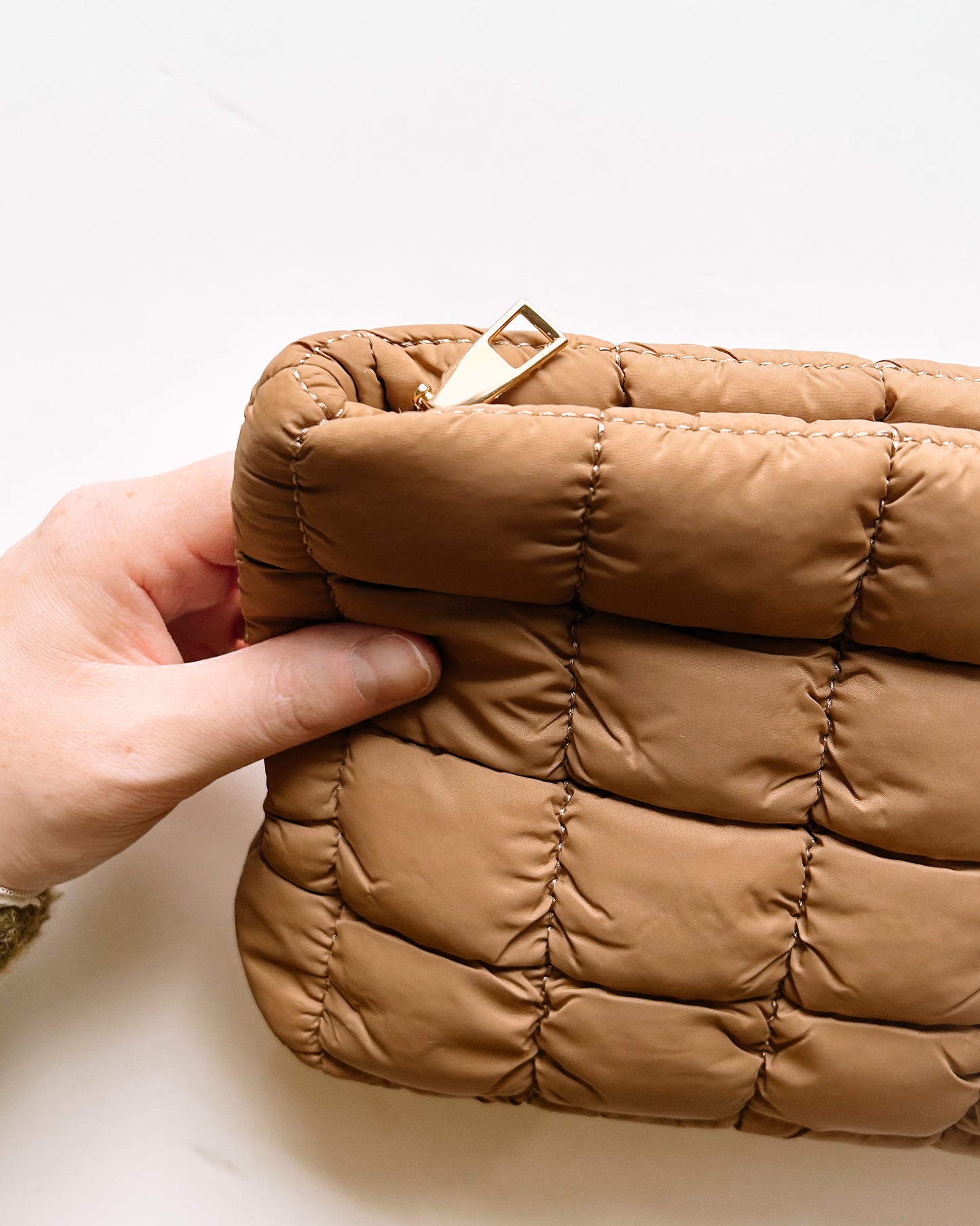 Add Quilted Puffer Zip Pouch [tan] to the cart