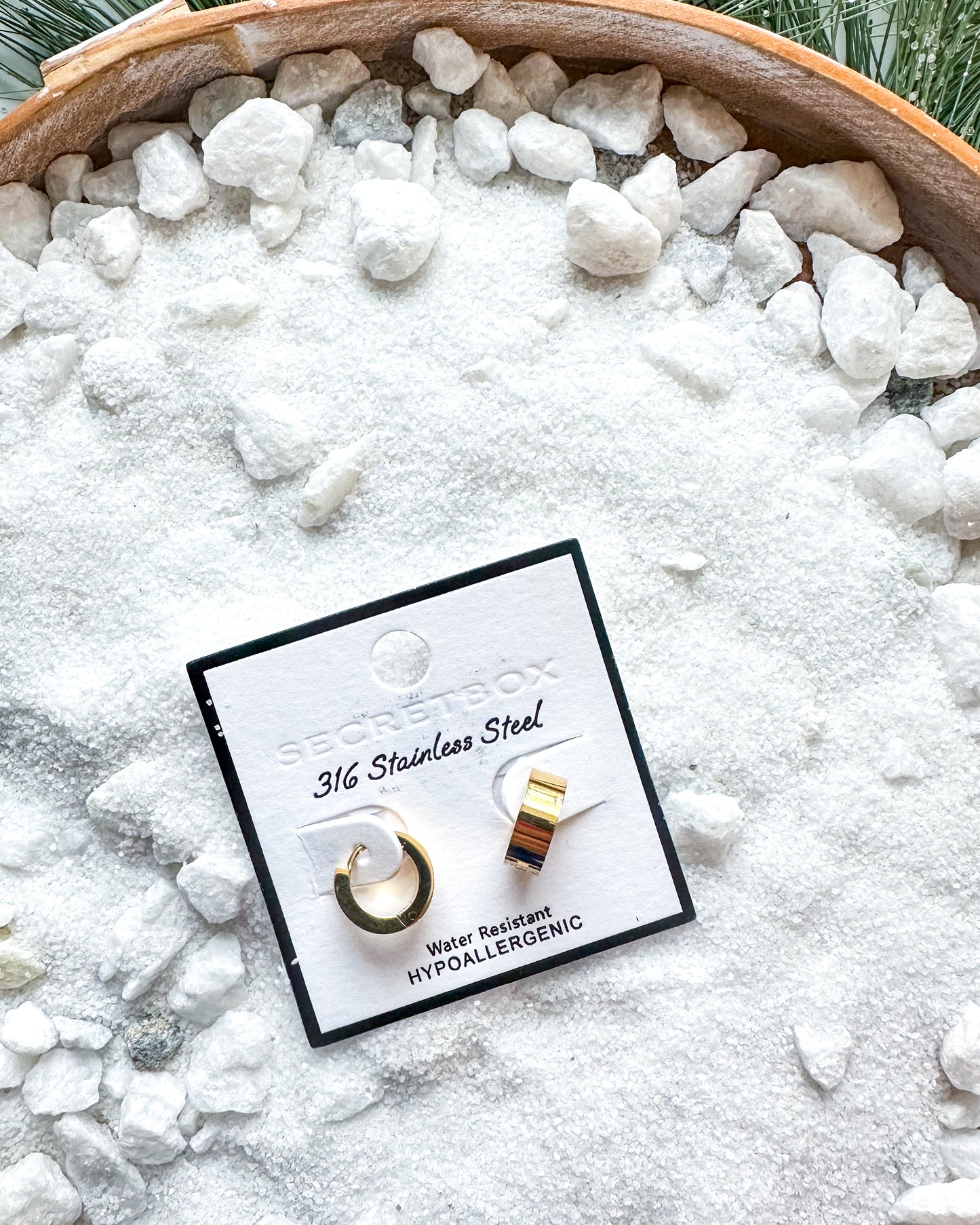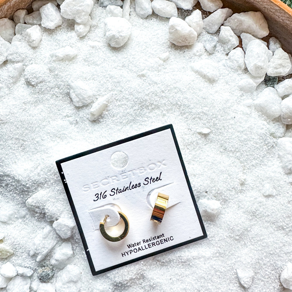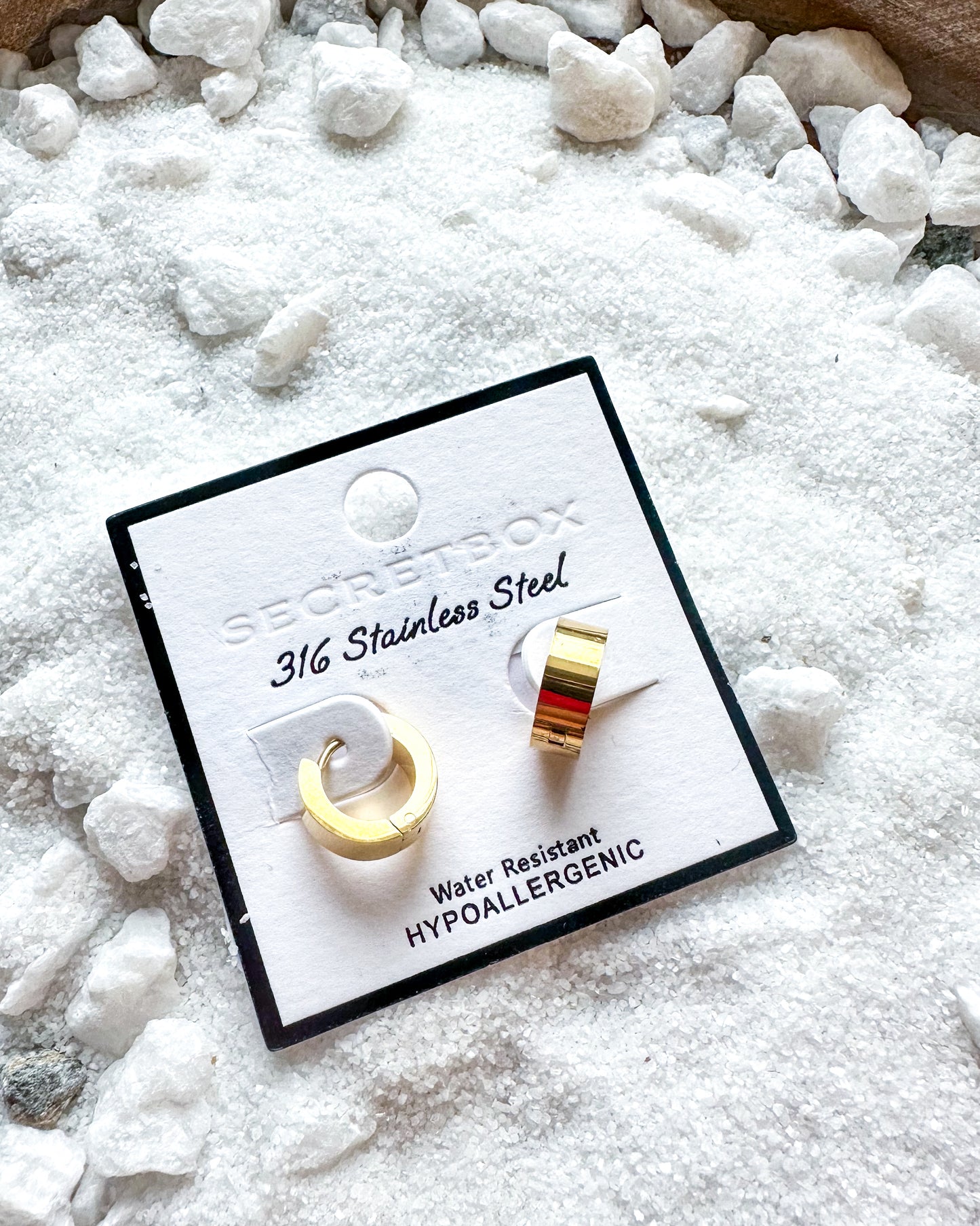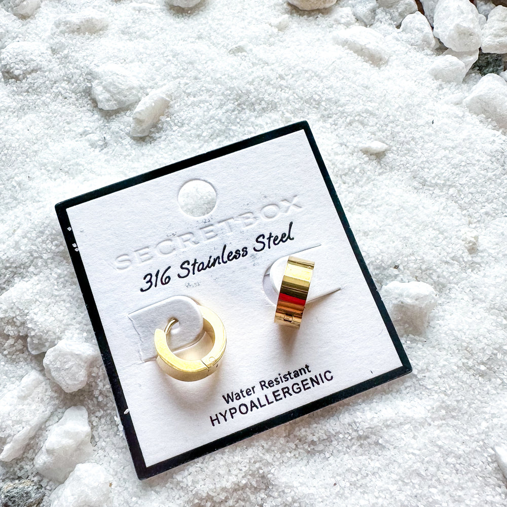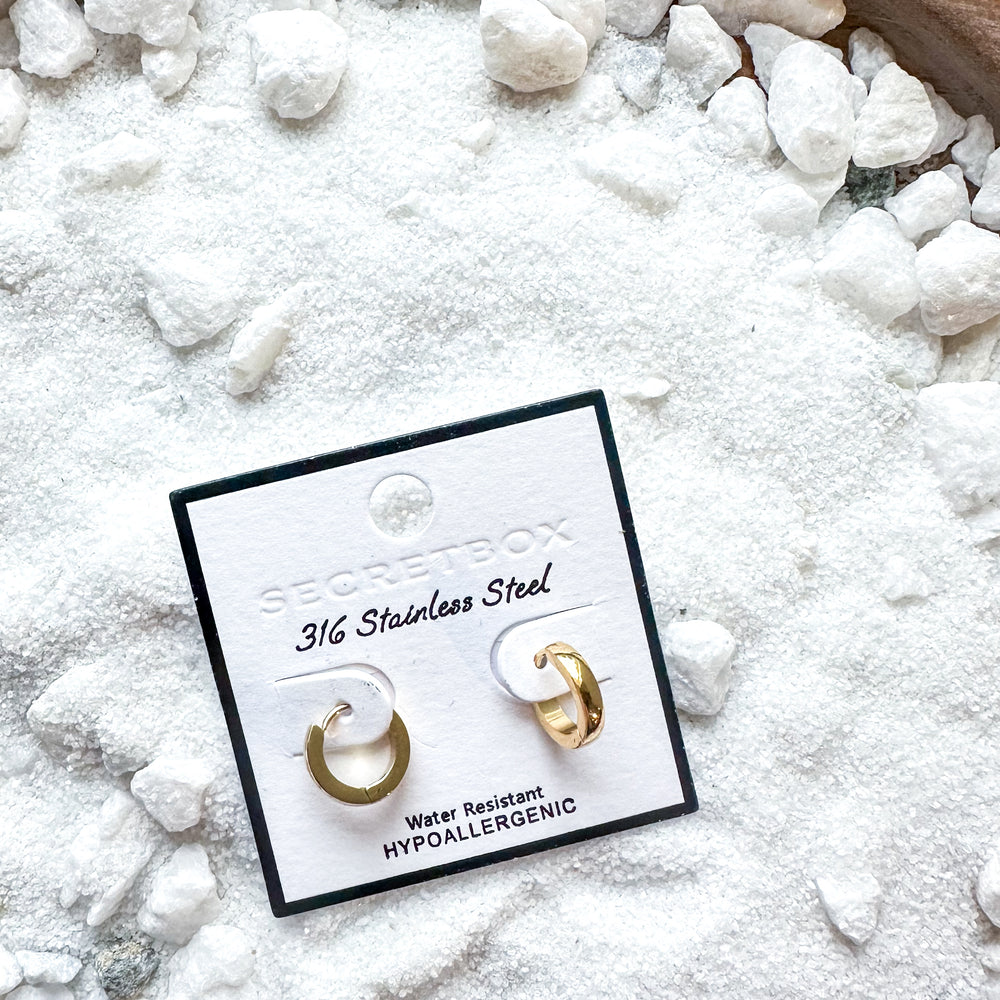 Wide Hinged Huggie Earrings [stainless steel gold]