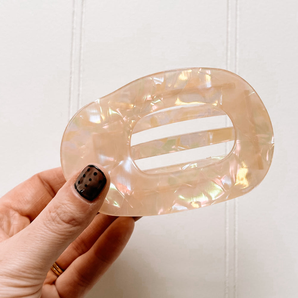Large Flat Round Hair Clip [cream/iridescent]