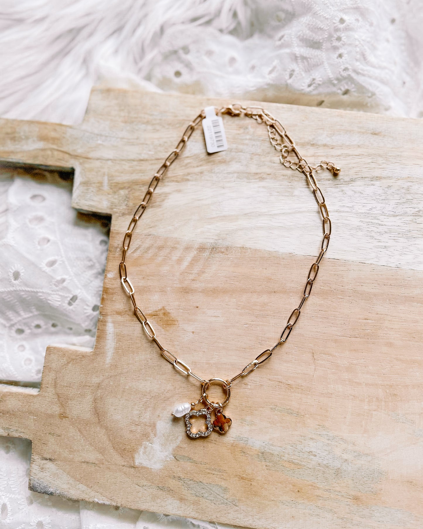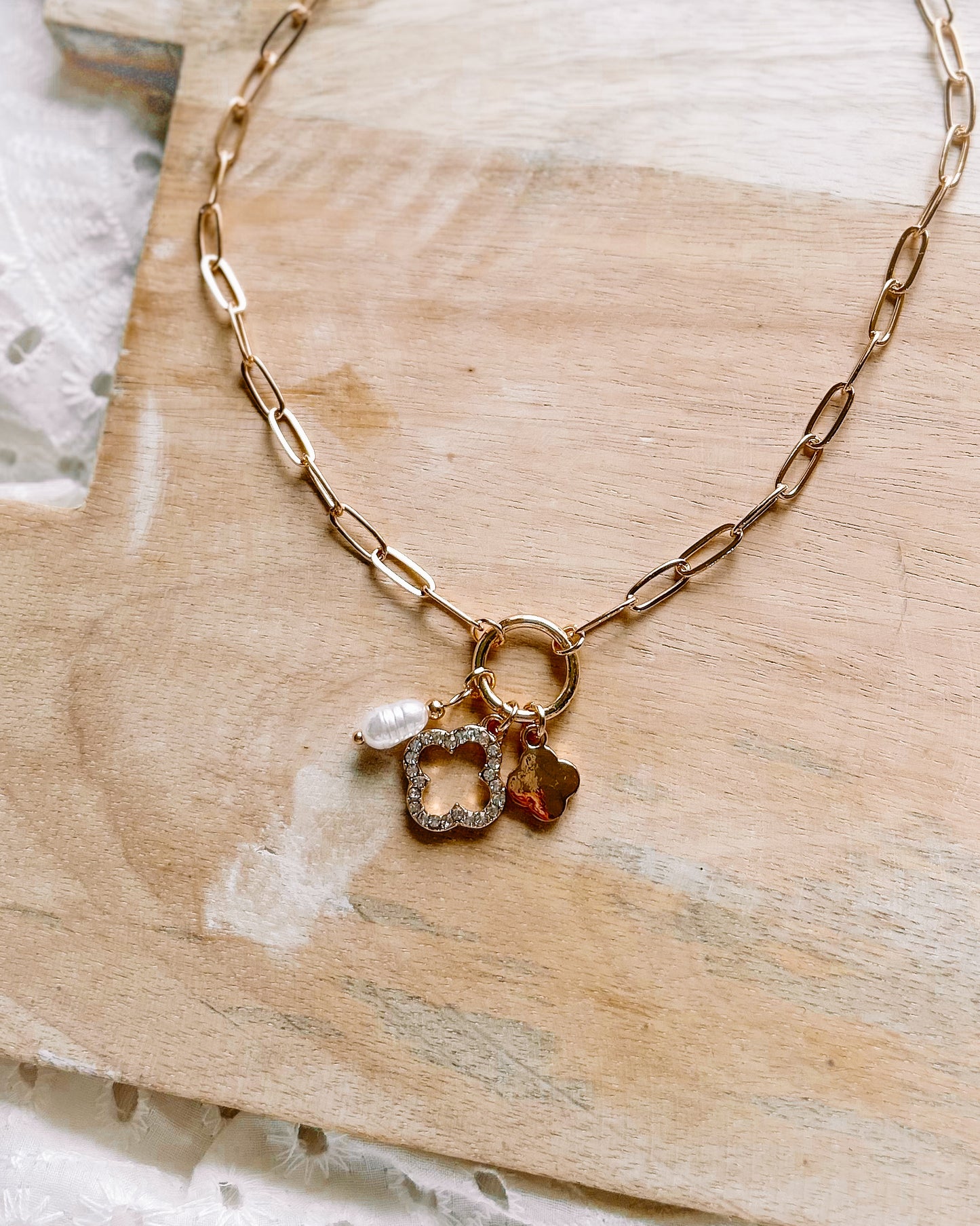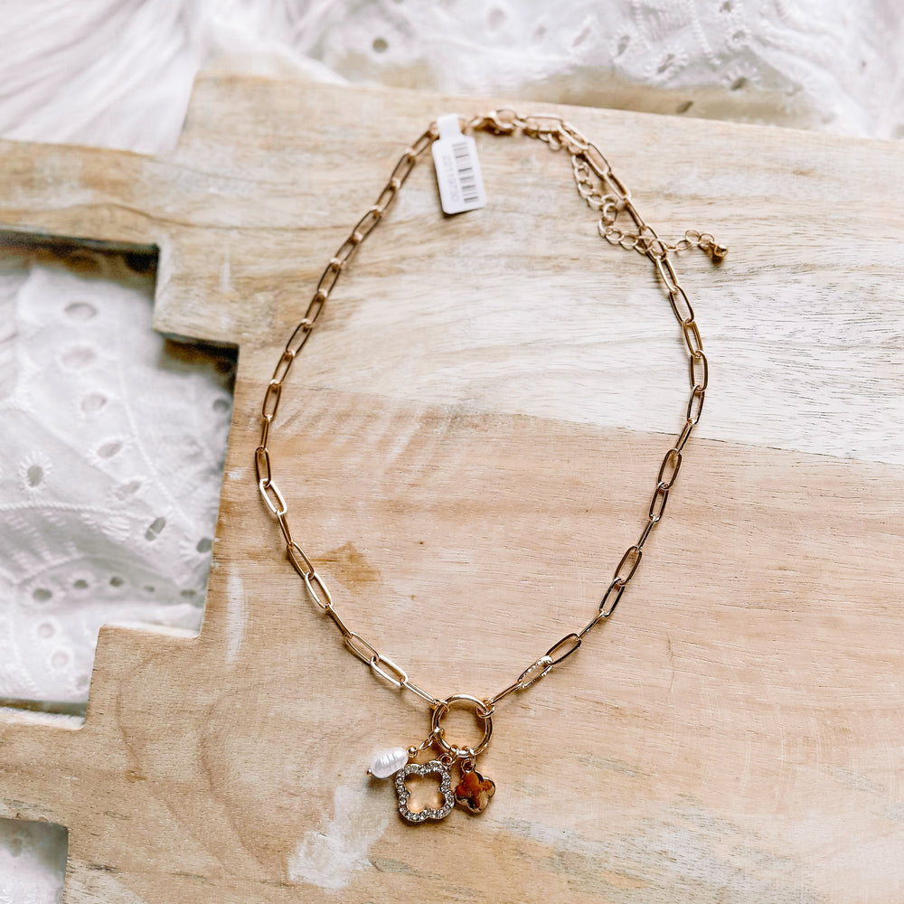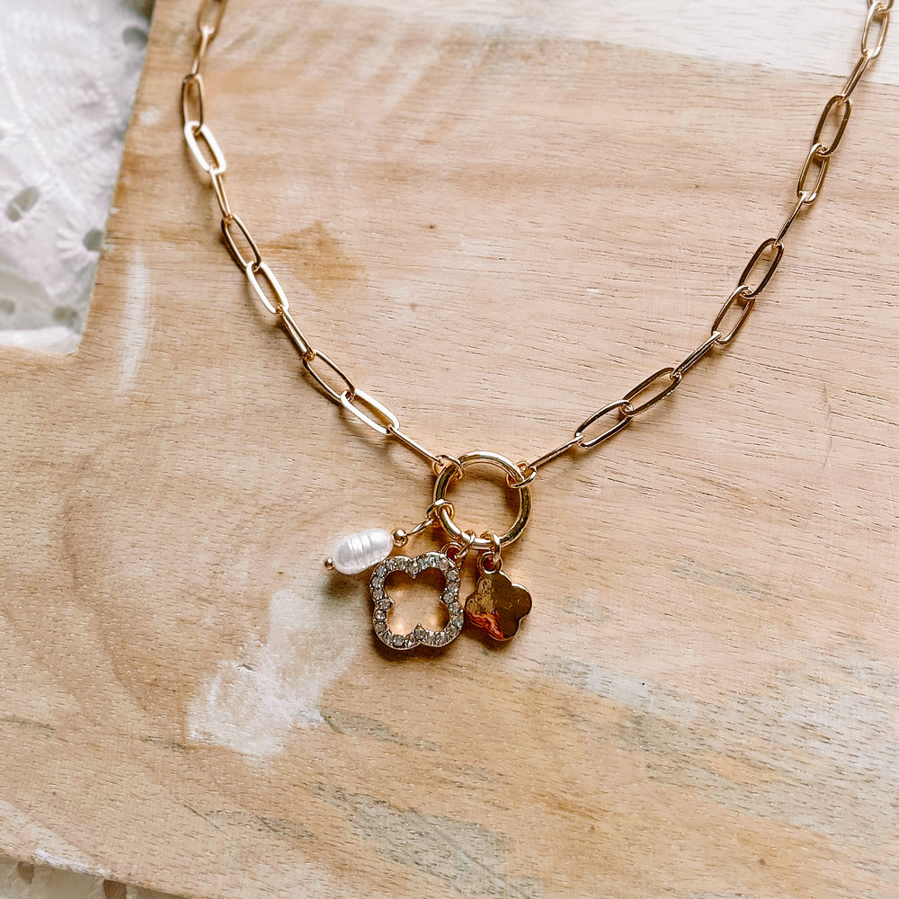 Add Clovers & Pearls Paper Clip Necklace [gold] to the cart
