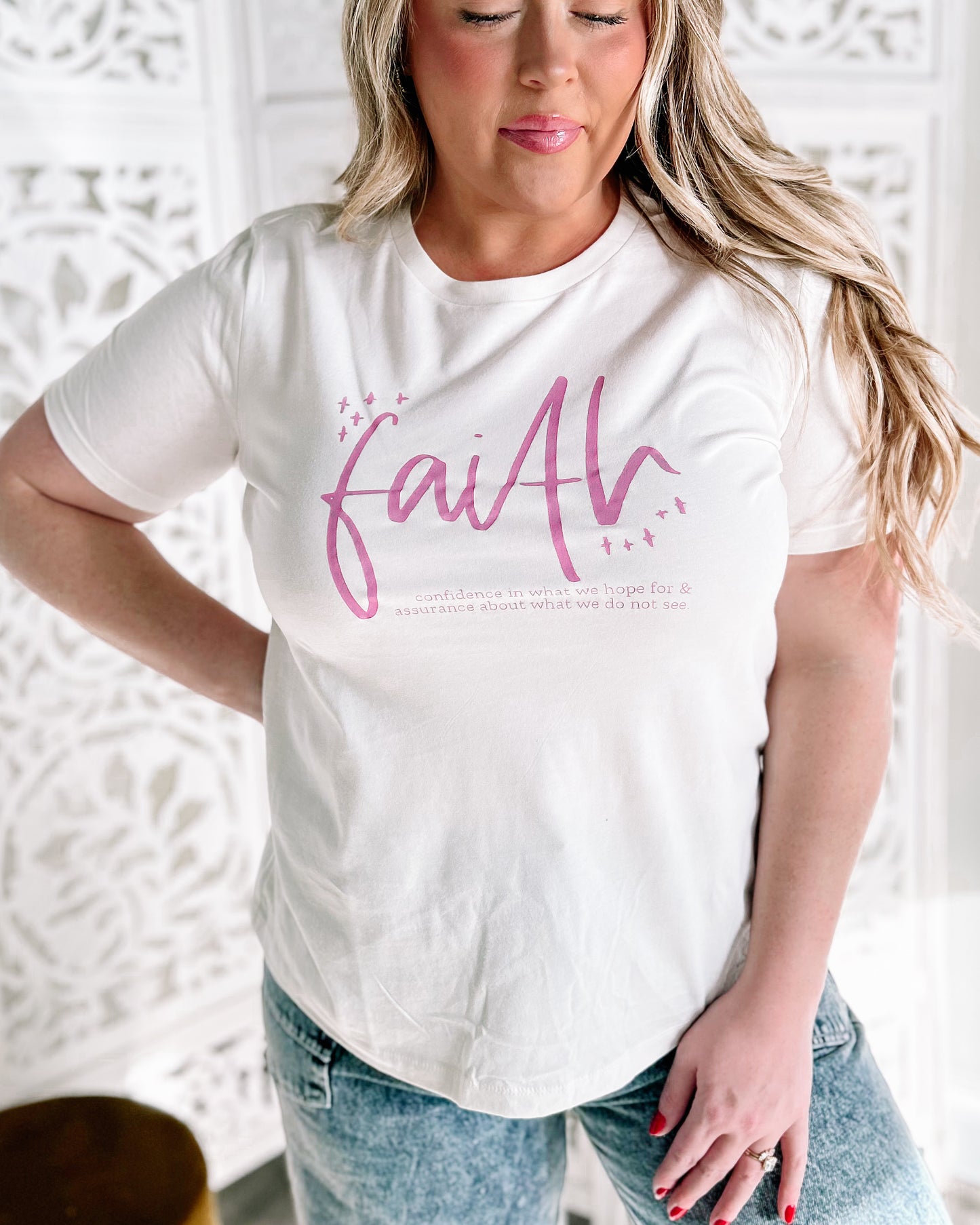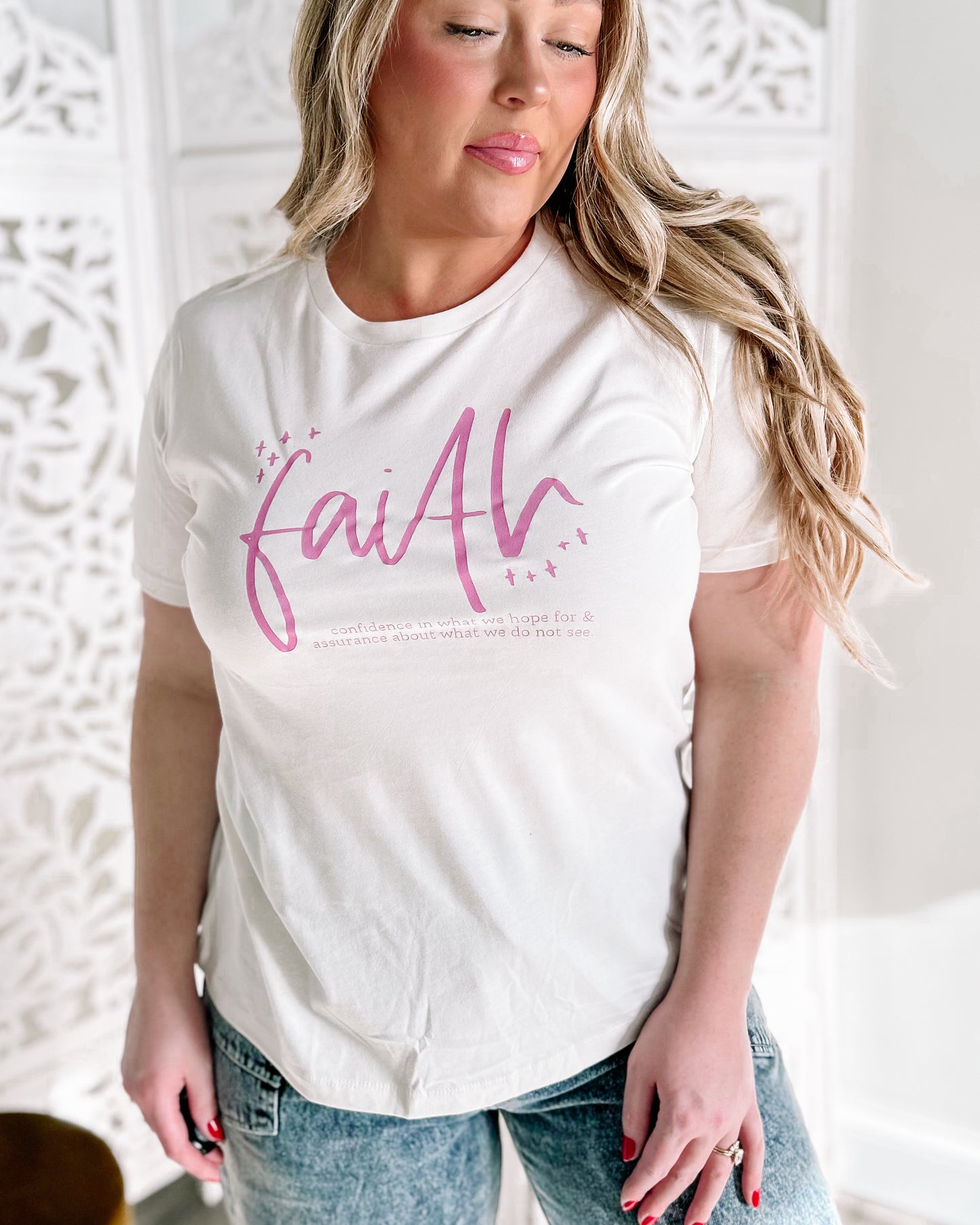 FAITH is... women's tshirt [v. white + pink print]