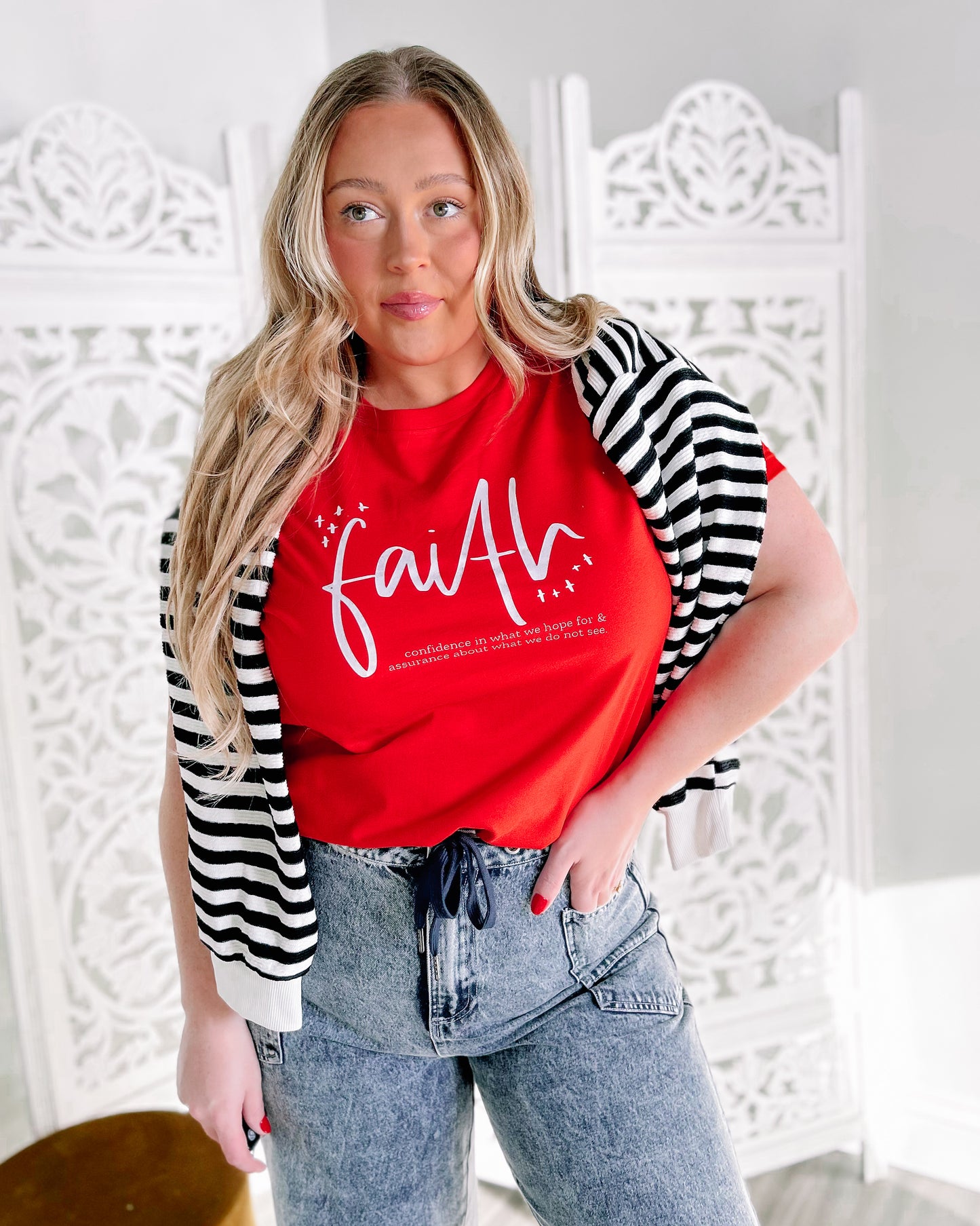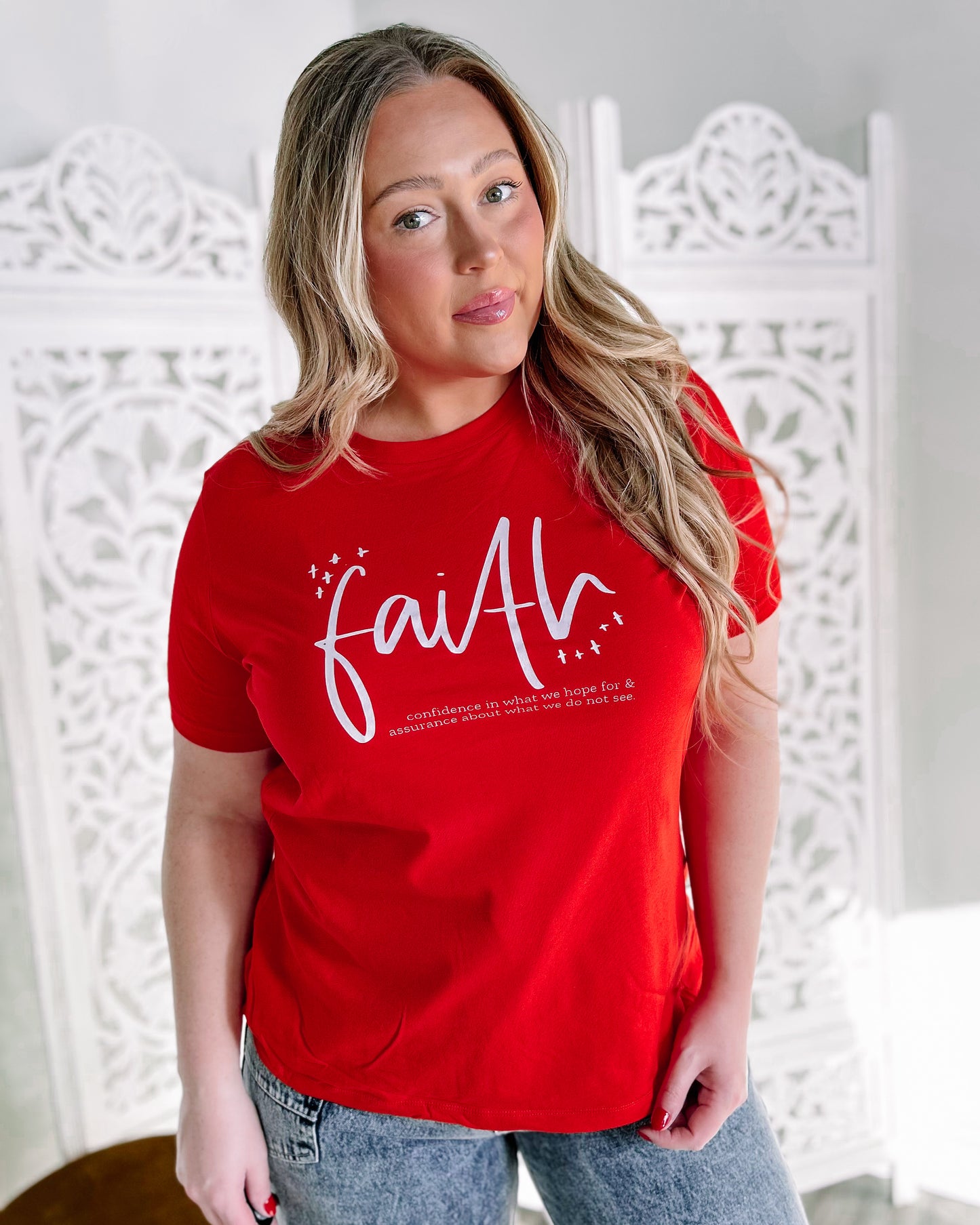 FAITH is... women's tshirt [poppy red + white print]