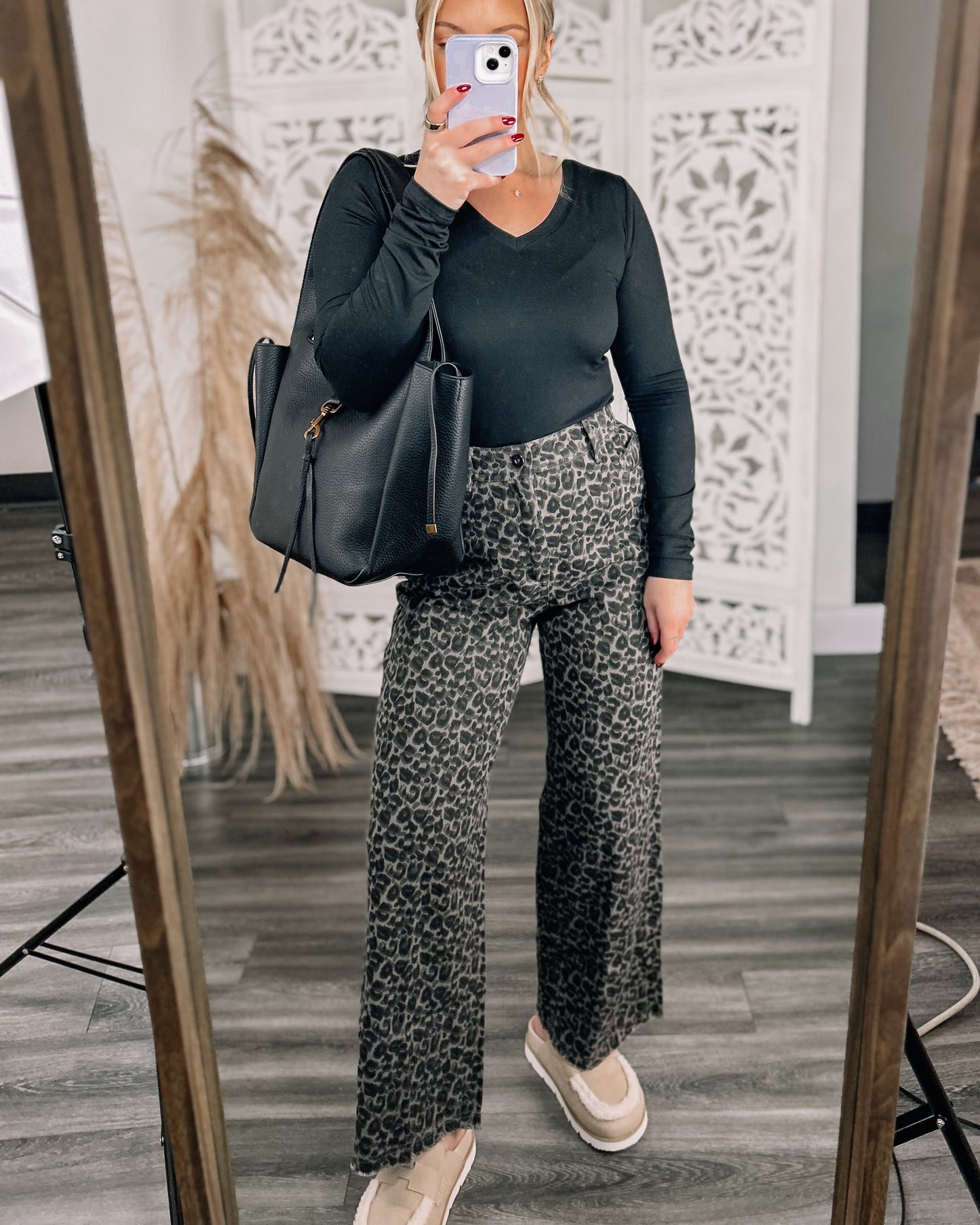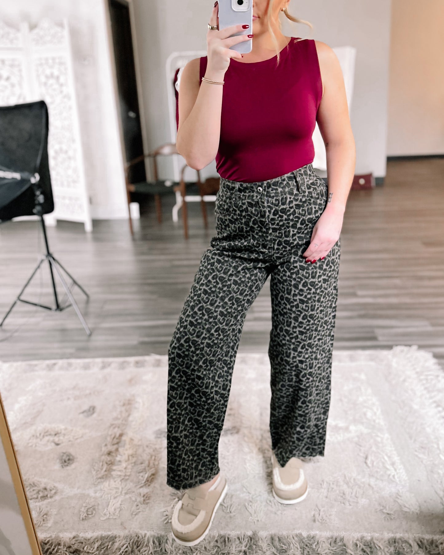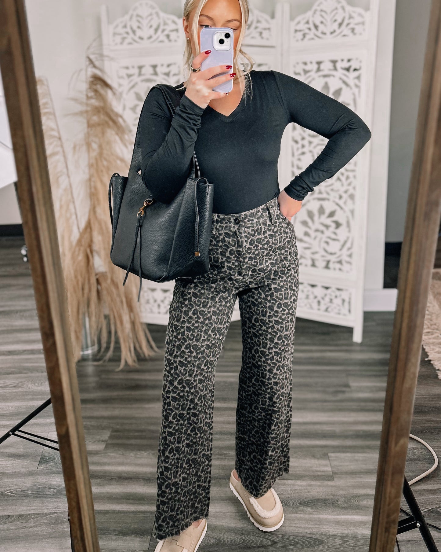 DETAILS: Fall in love with leopard in the "Catch Me Later" straight leg denim pants in dark leopard, boasting a frayed hem, handy belt loops, and roomy side and back pockets.