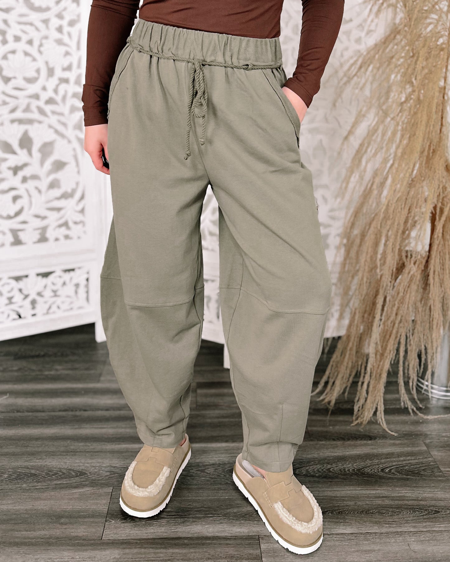 DETAILS: The Esme joggers are a cozy autumn must-have! Featuring a barrel cut, a laid-back fit, and handy pockets paired with a drawstring waist, they’re perfect for fuss-free style and comfort.
