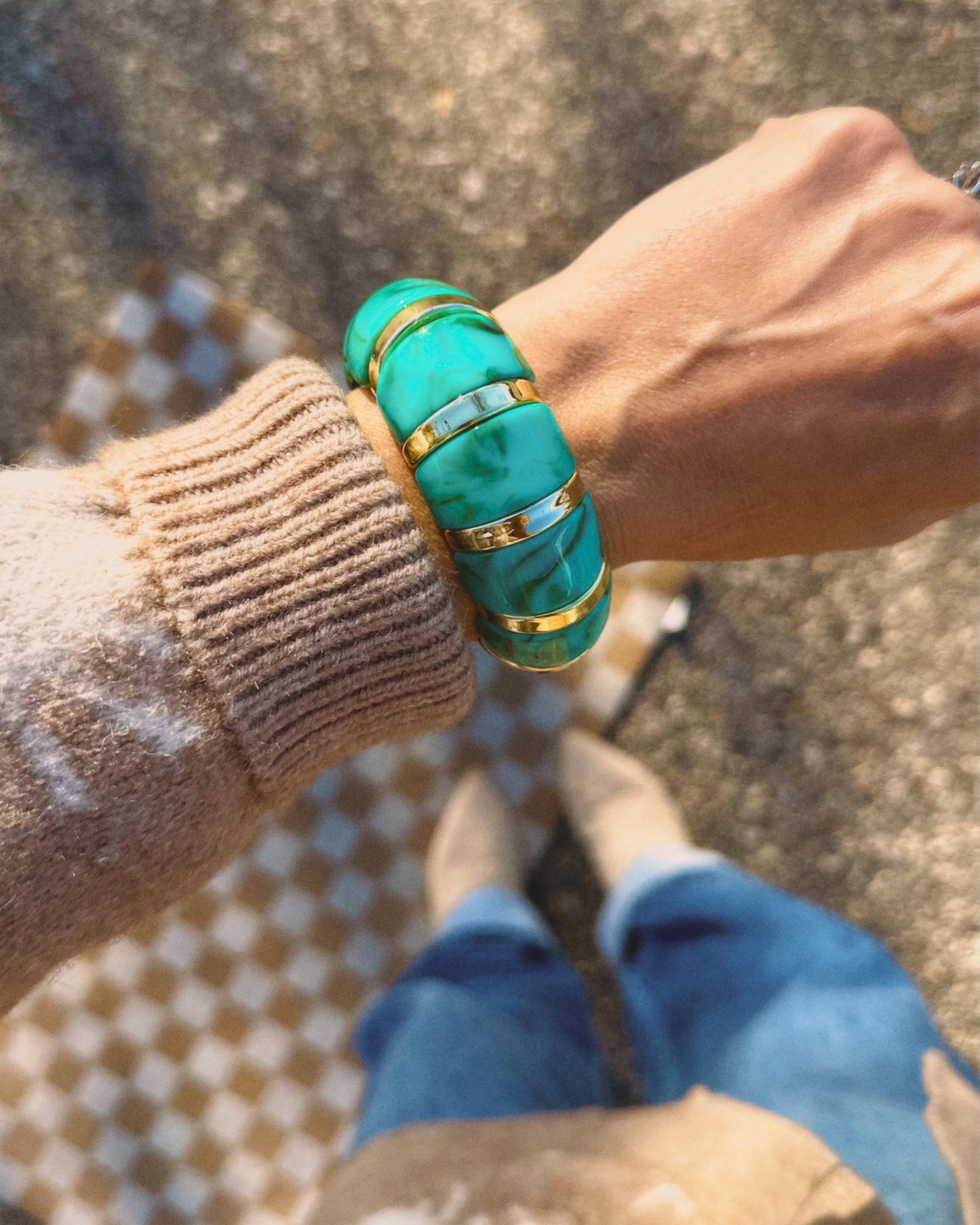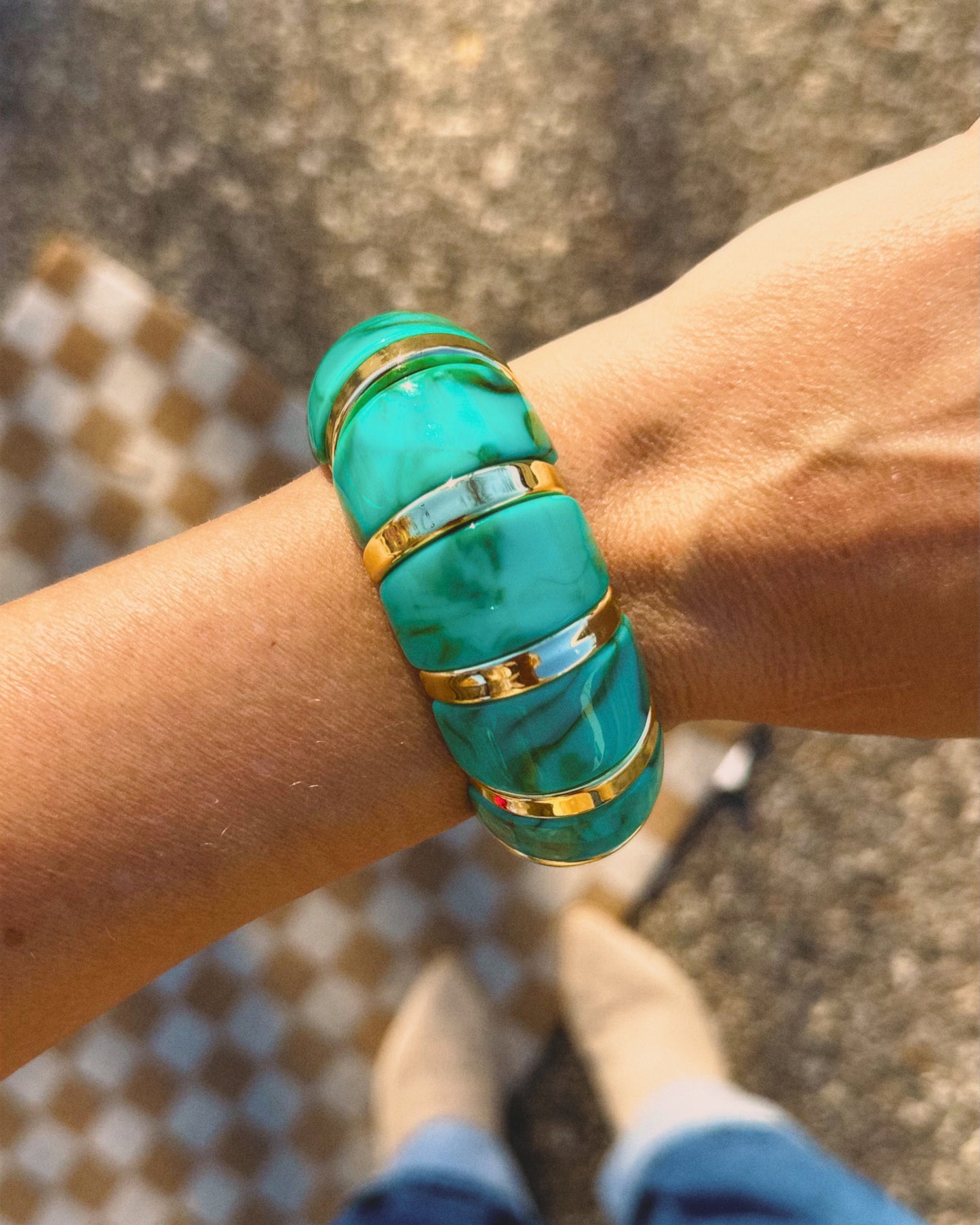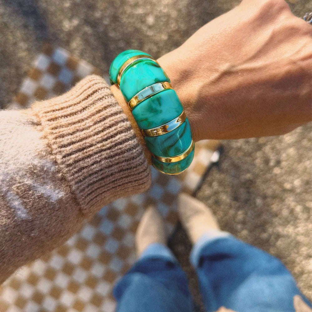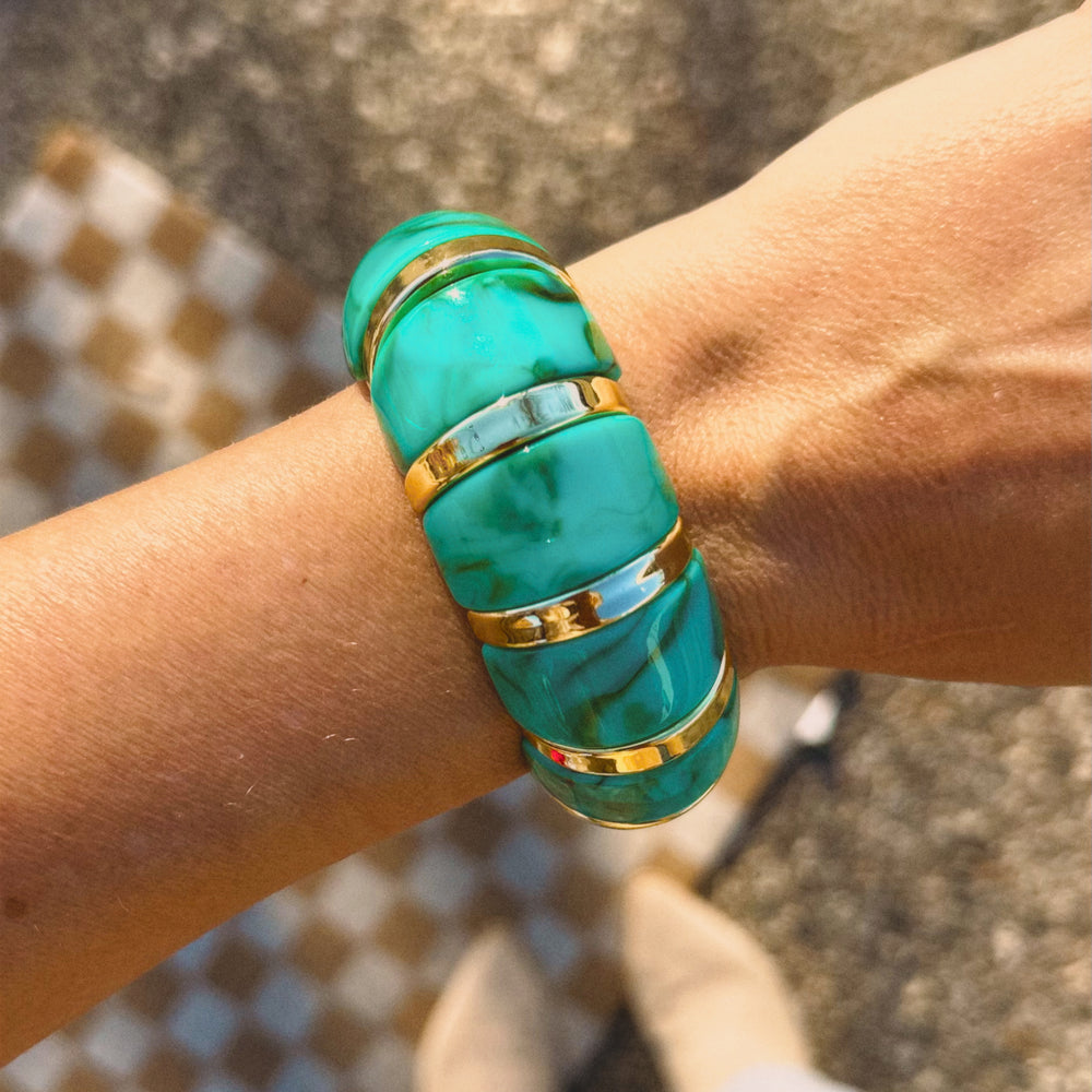 Chunky Stretch Acrylic Bangle [teal/gold]