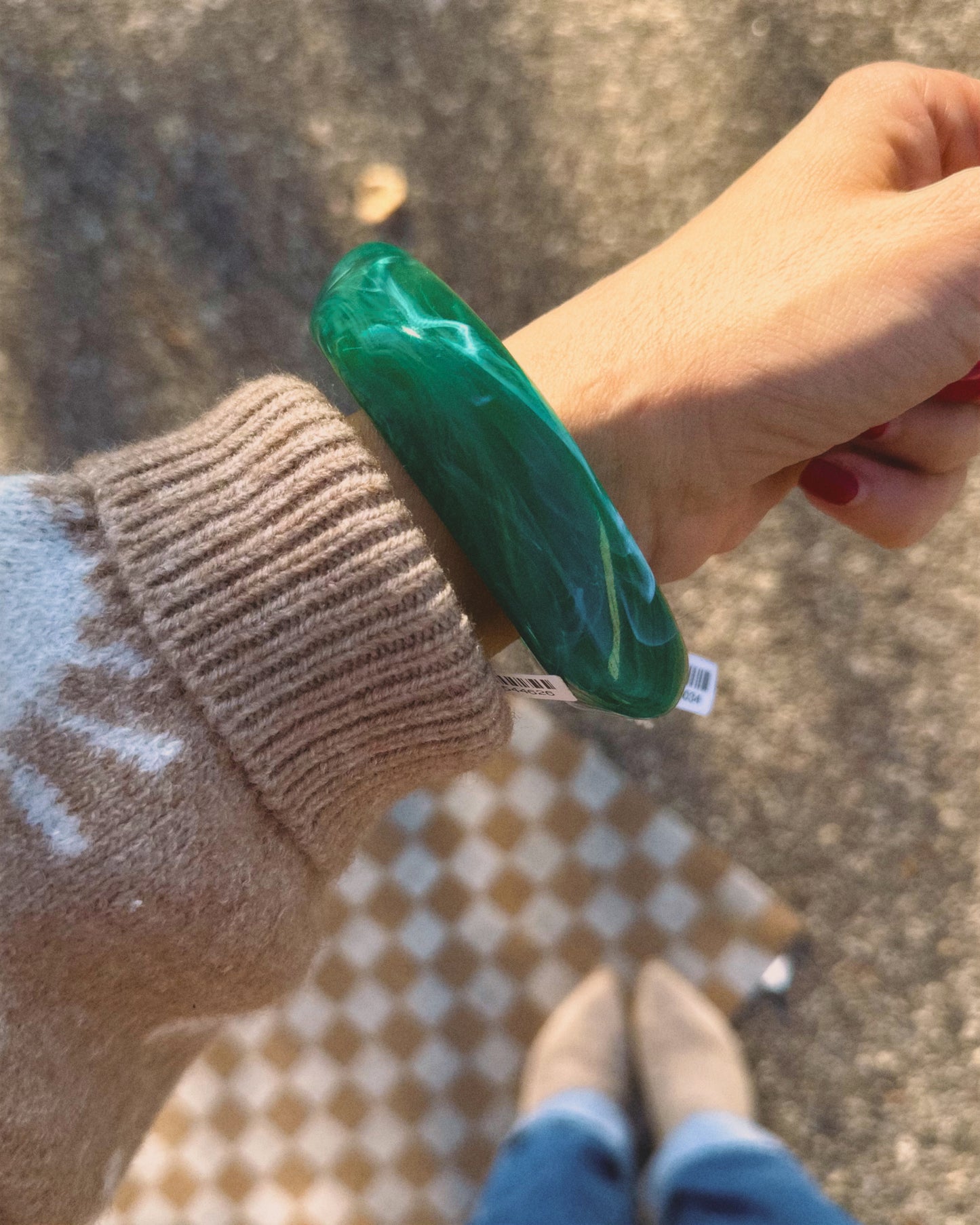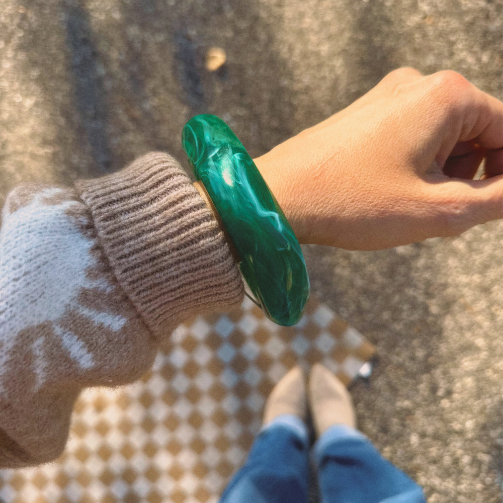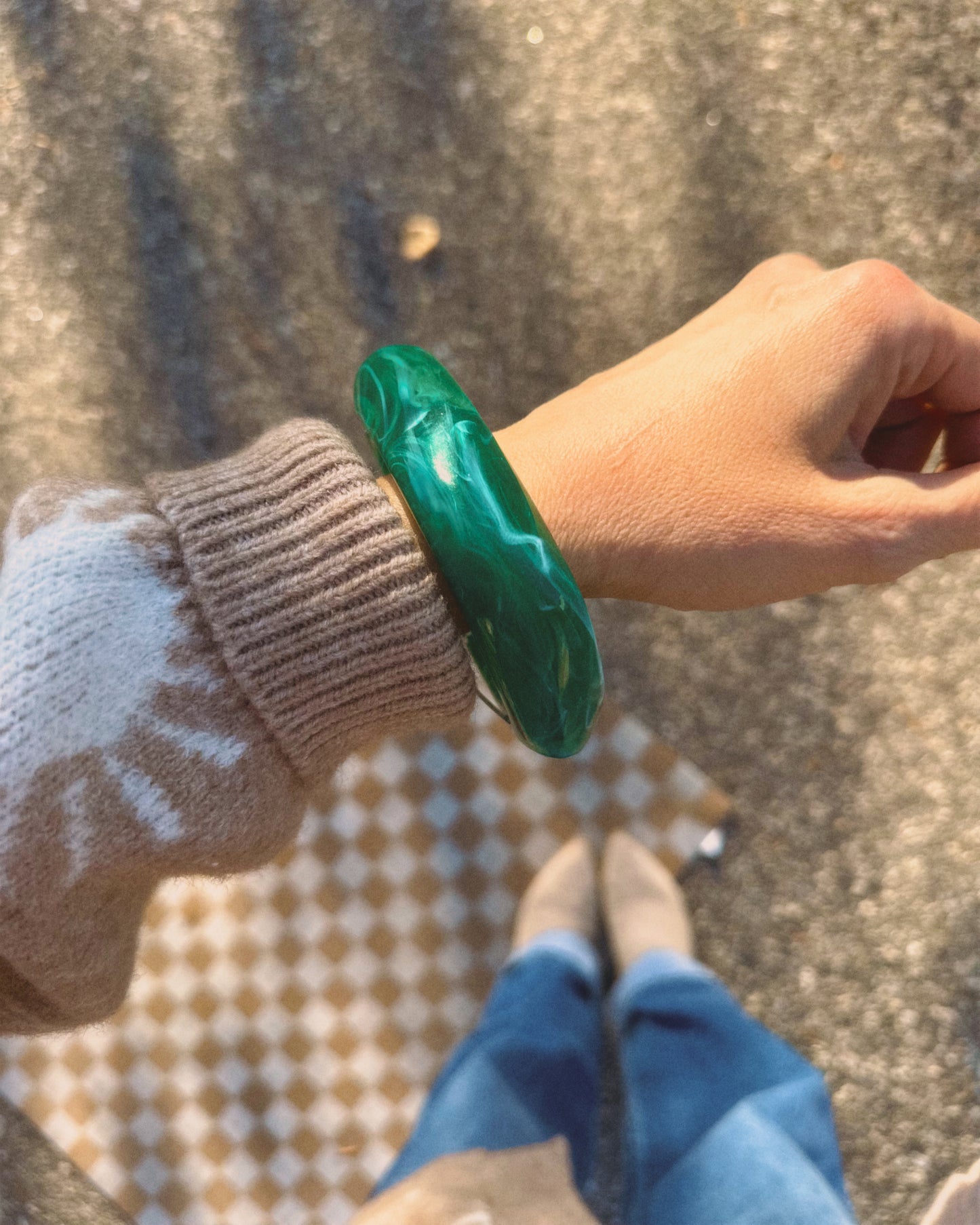 Chunky Stretch Acrylic Bangle [teal/gold]