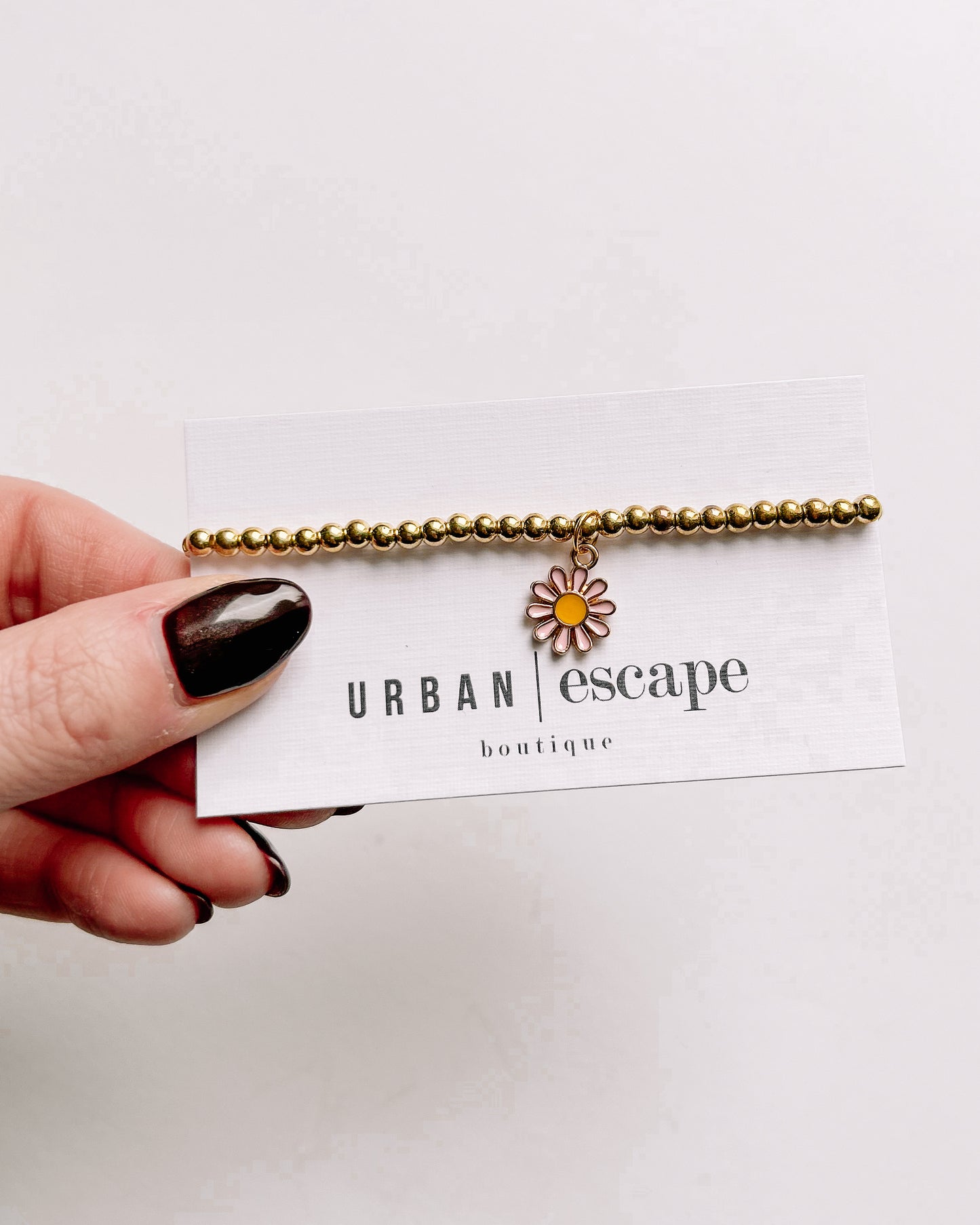 Add Beaded Charm Bracelet [gold/flower] to the cart