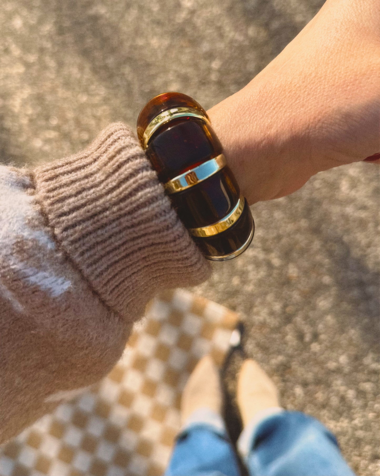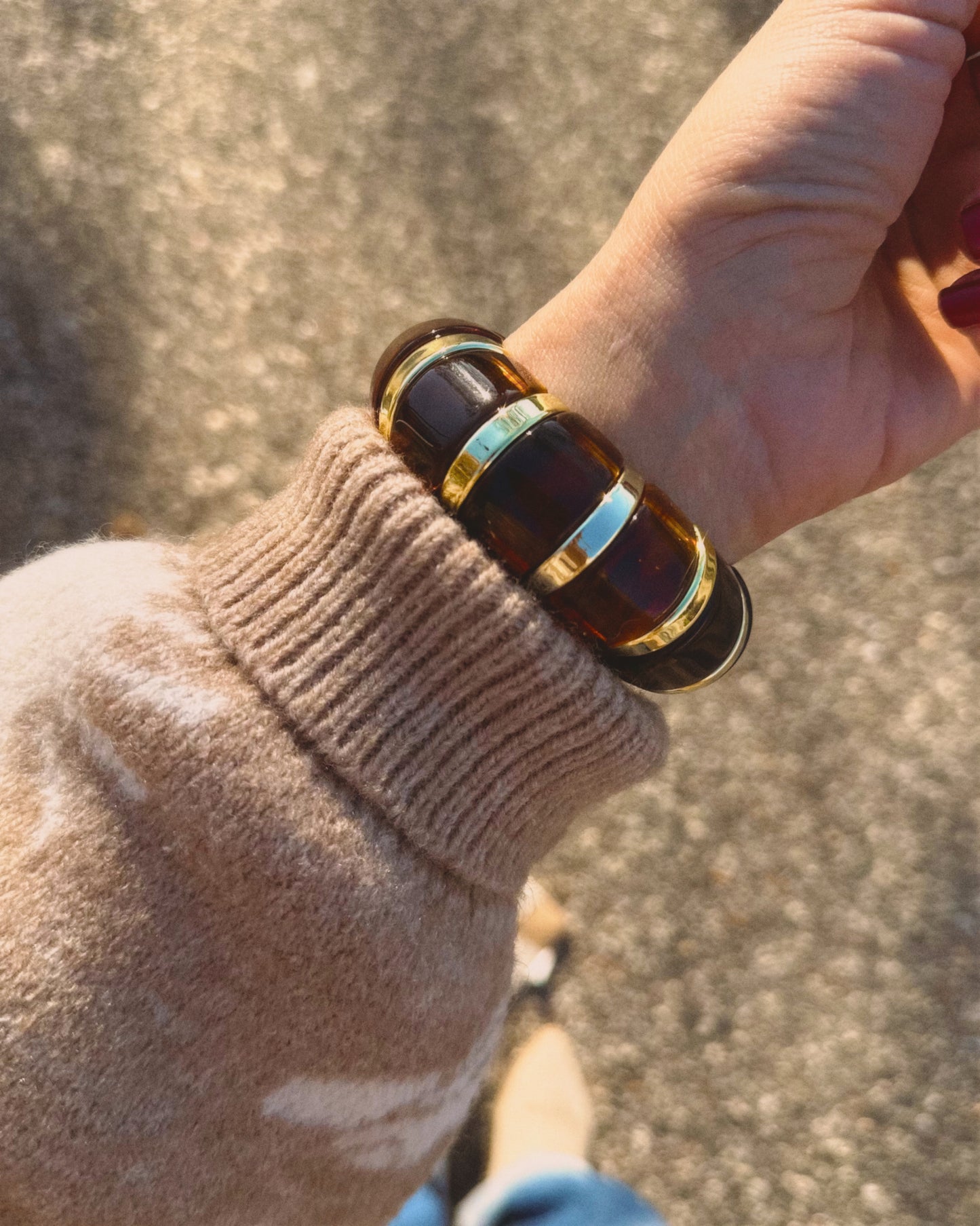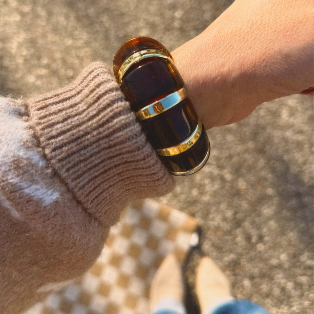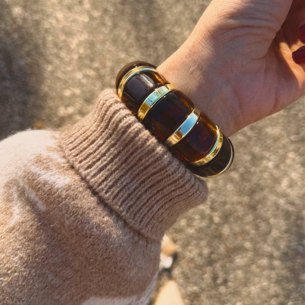 Chunky Stretch Acrylic Bangle [brown/gold]