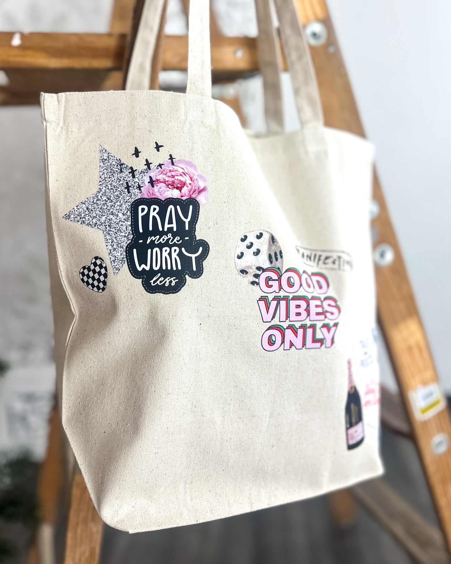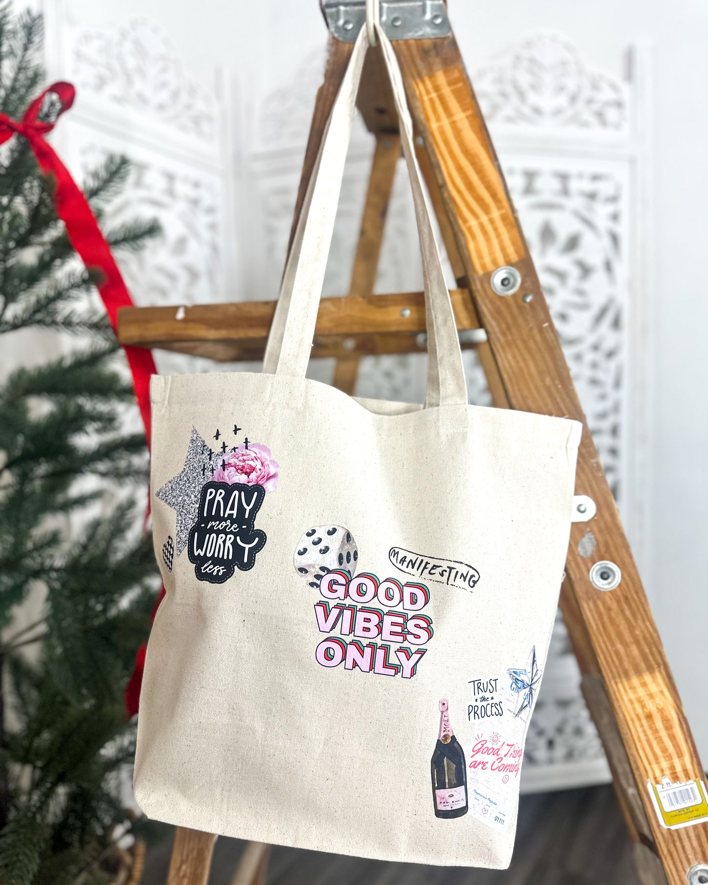 UE COLLAGE TOTE large: GOOD VIBES ONLY