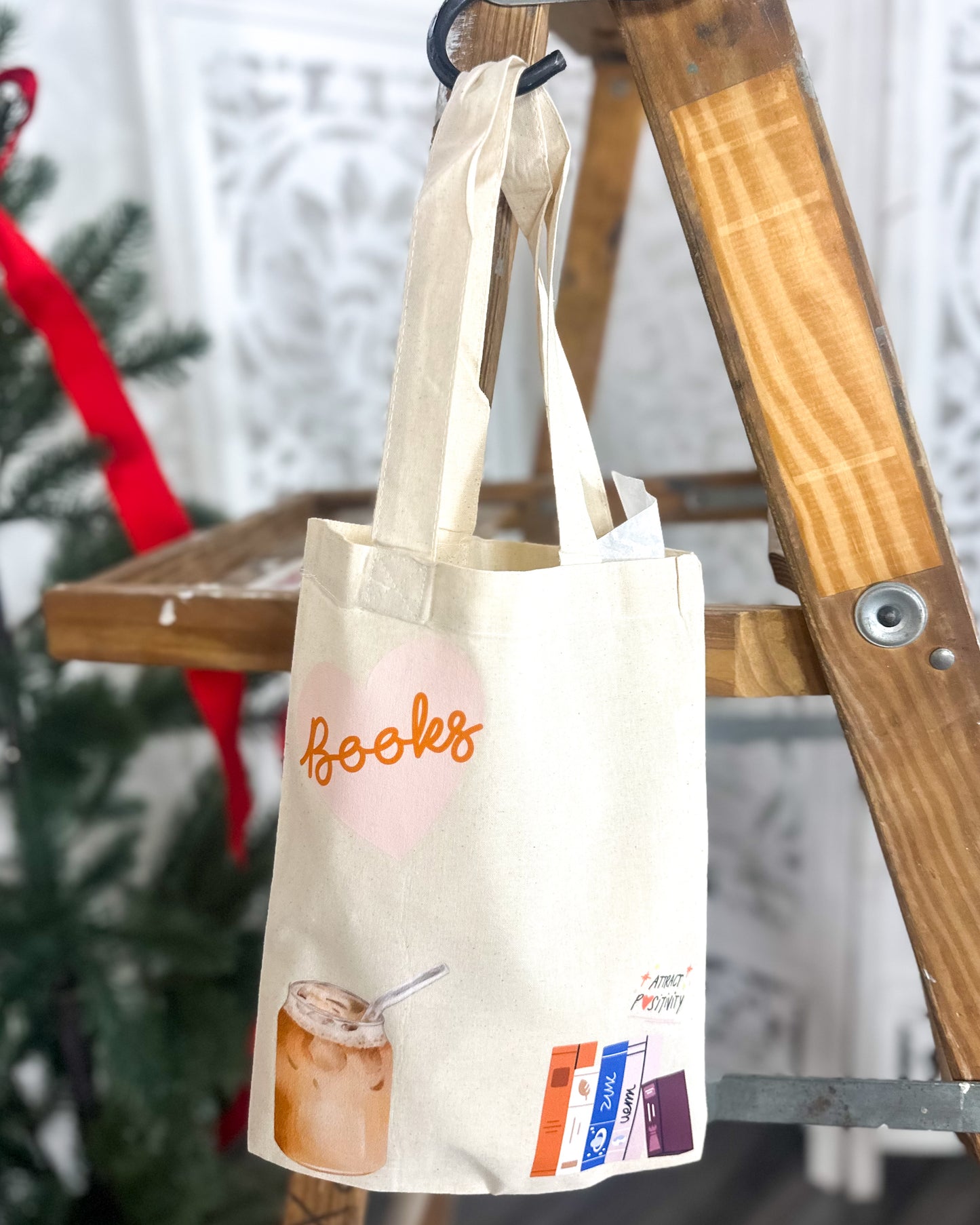 This is our SMALL tote, measuring approximately 9" x 11" — the perfect little carry-all for your essentials or the cutest reusable gift bag.