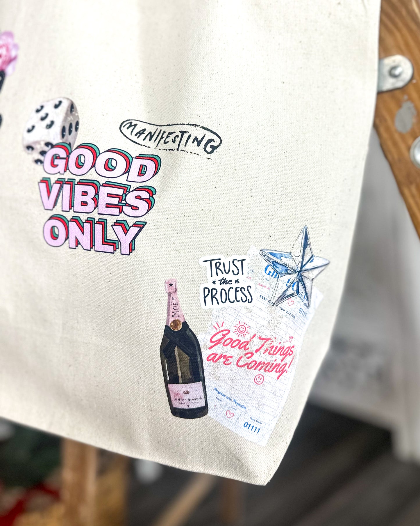 UE COLLAGE TOTE large: GOOD VIBES ONLY