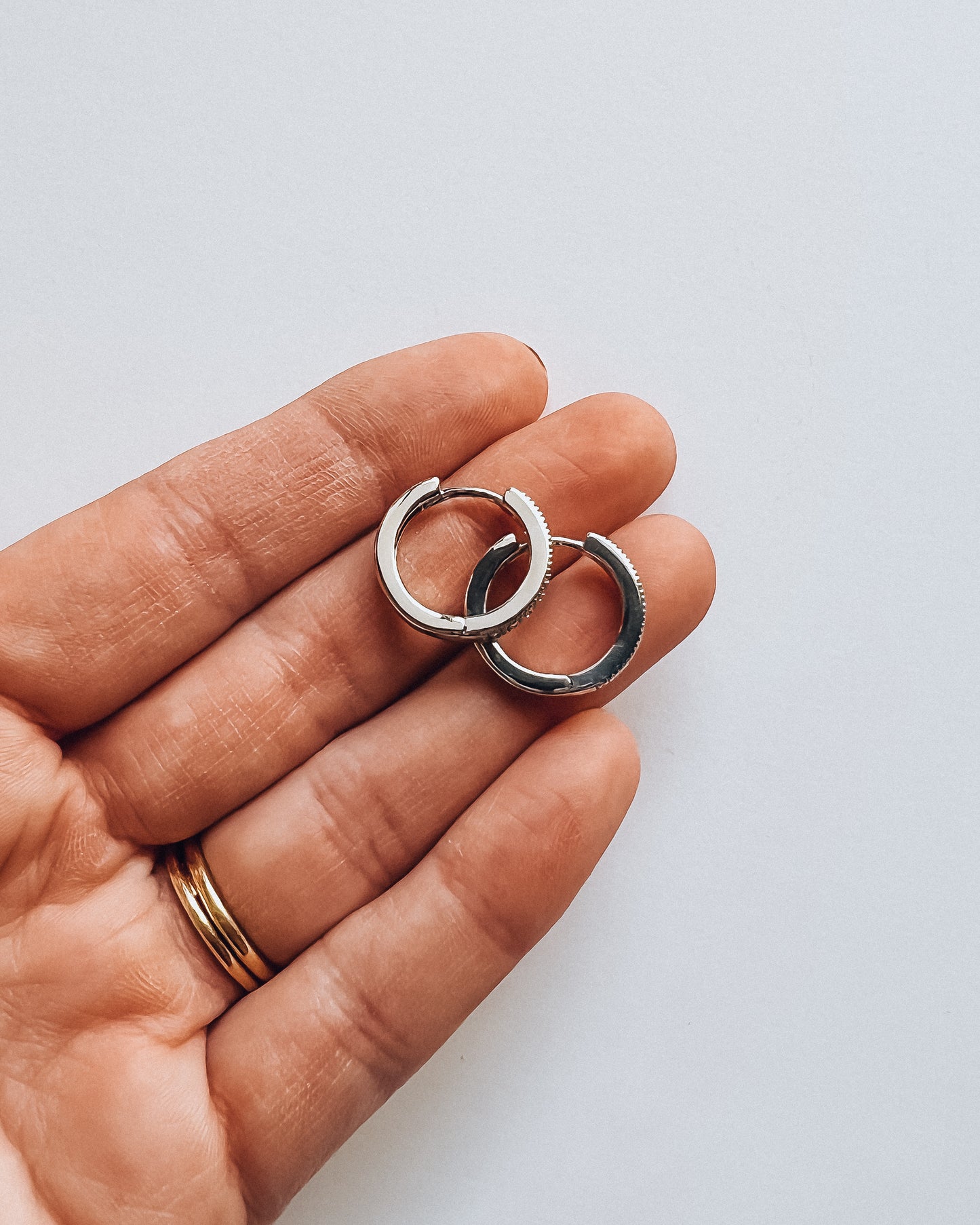 silver diamond huggie earrings