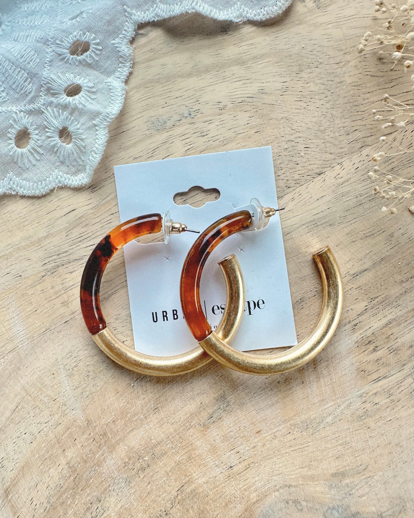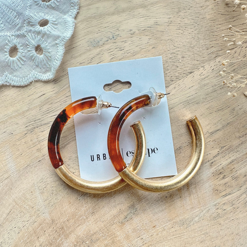 Add Taylor Hoop Acrylic Earrings [brown/gold] to the cart