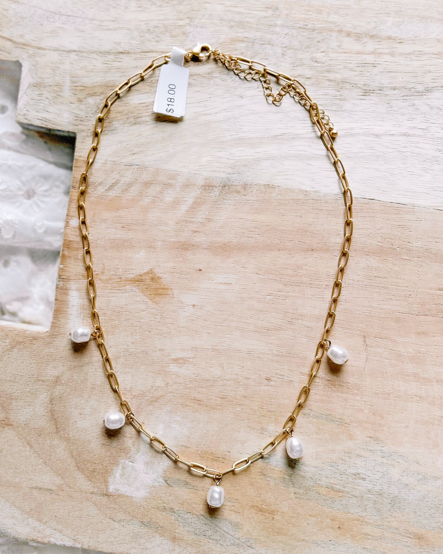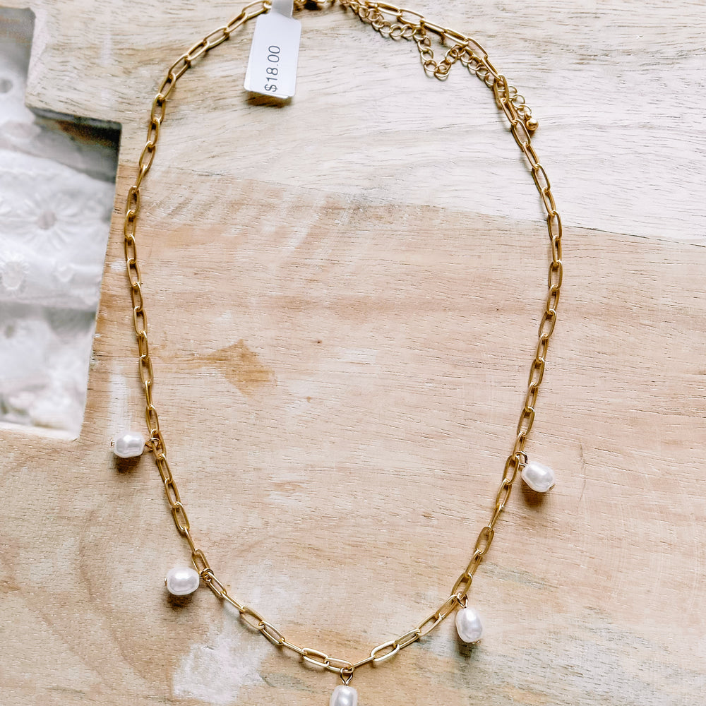 Add Paper Clip Pearl Charm Necklace [gold] to the cart