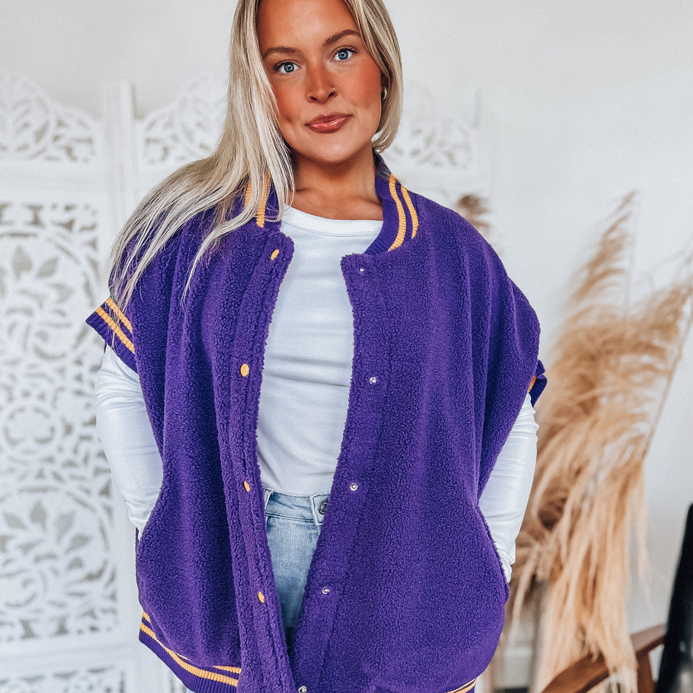 Add Varsity Sherpa Vest [purple/gold] to the cart