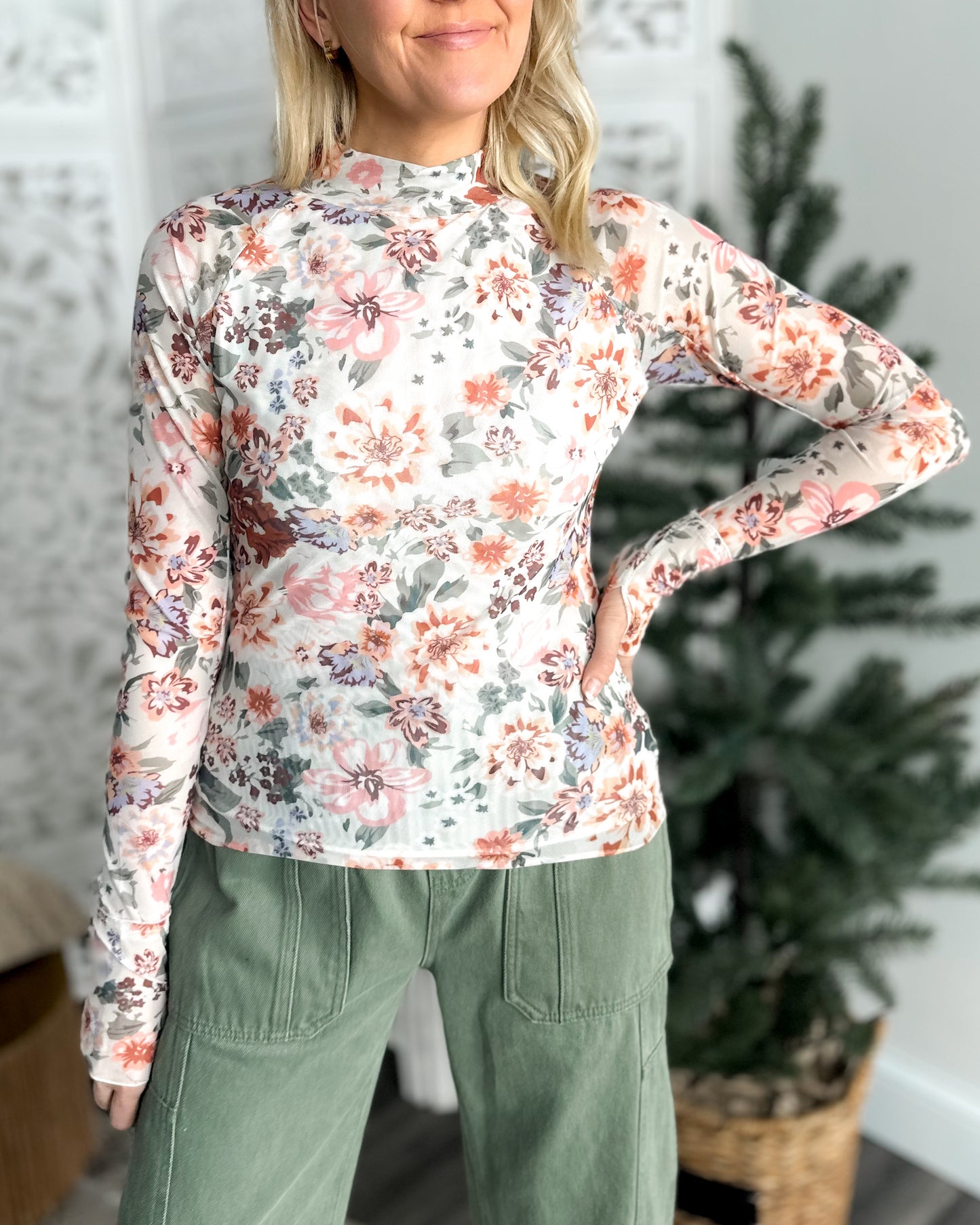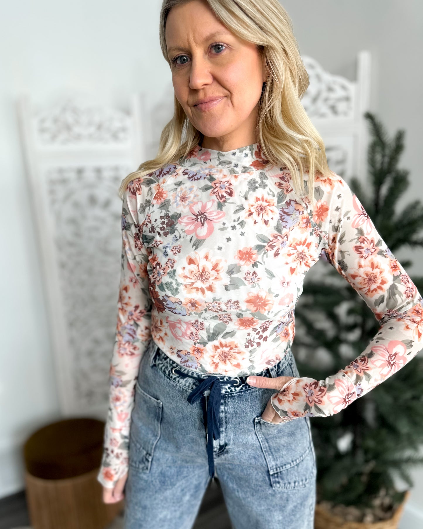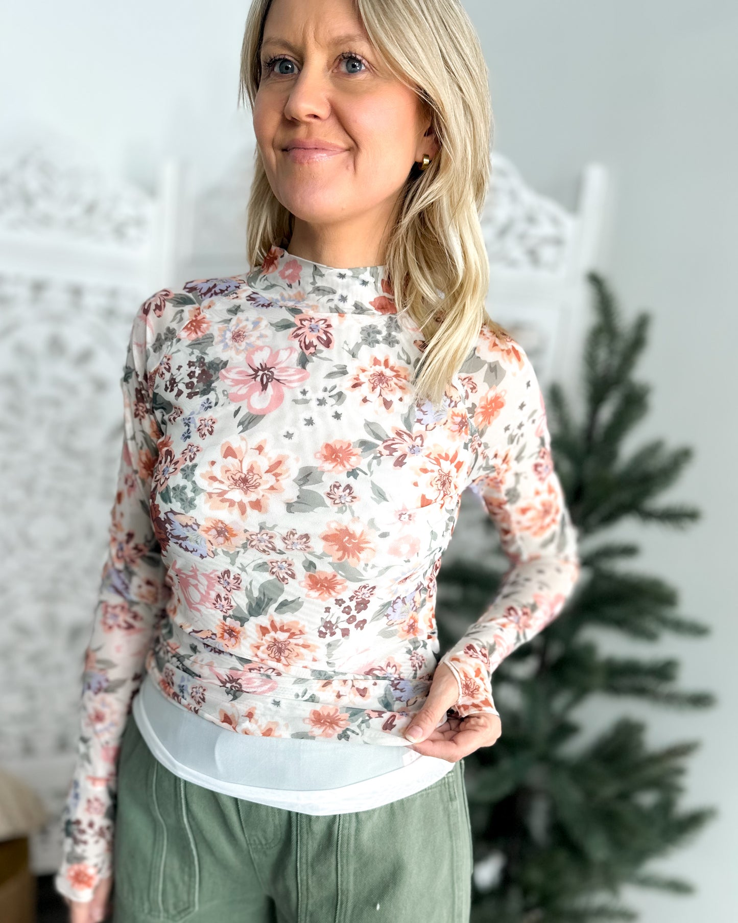 A romantic floral mesh top made for easy layering. Featuring a double-layered body (no under tank needed!) with sheer mesh sleeves for a flirty touch. Perfect for Valentine’s Day or adding a little romance to everyday outfits.