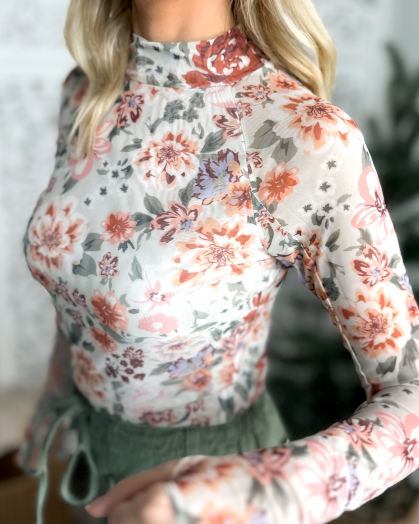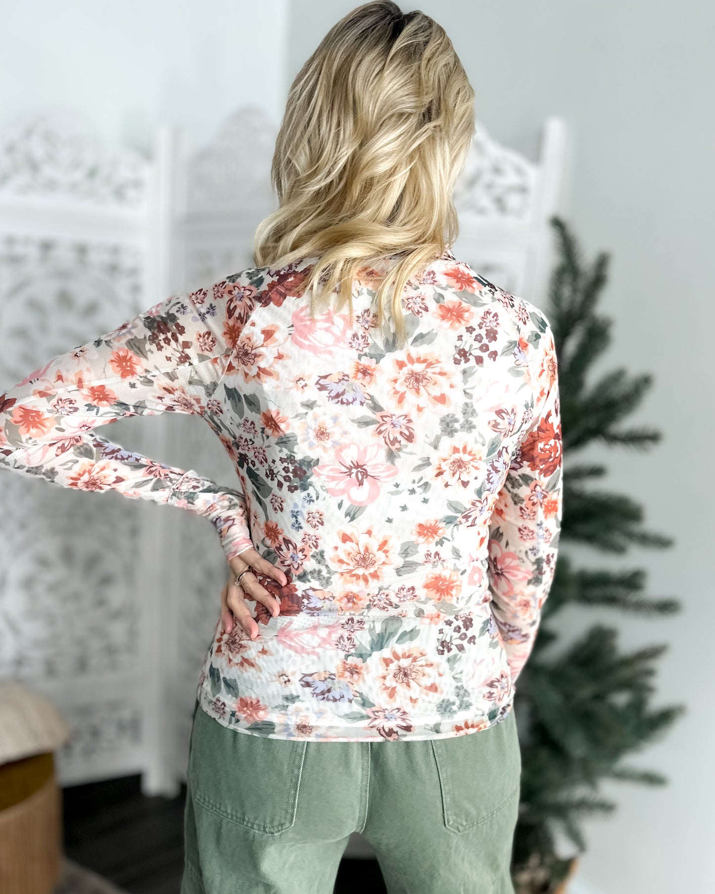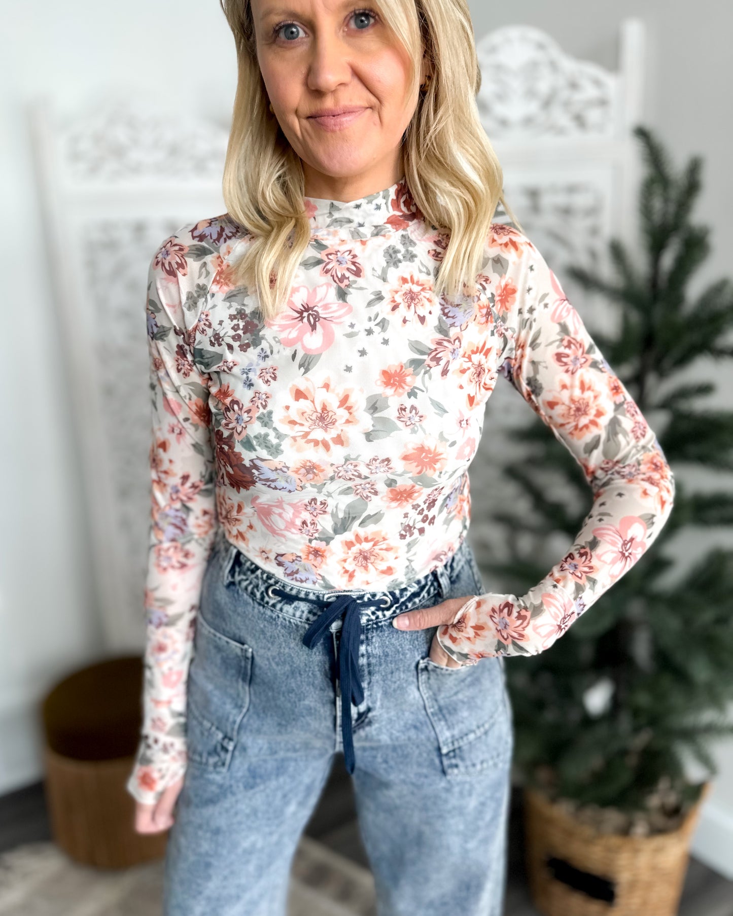 A romantic floral mesh top made for easy layering. Featuring a double-layered body (no under tank needed!) with sheer mesh sleeves for a flirty touch. Perfect for Valentine’s Day or adding a little romance to everyday outfits.