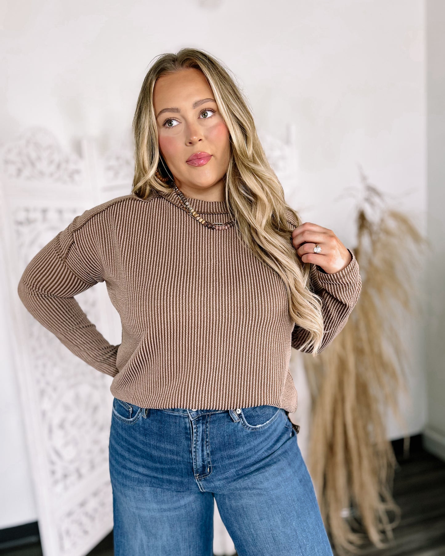 Remmy Ribbed Long Sleeve Top [brown]