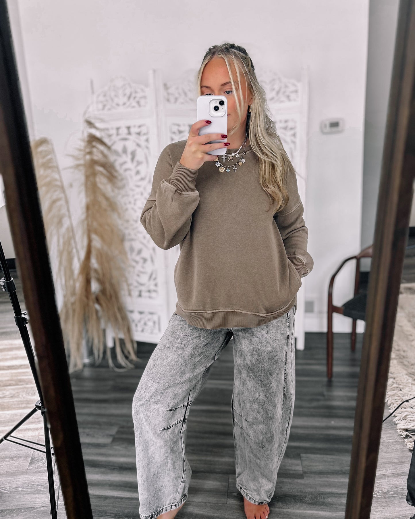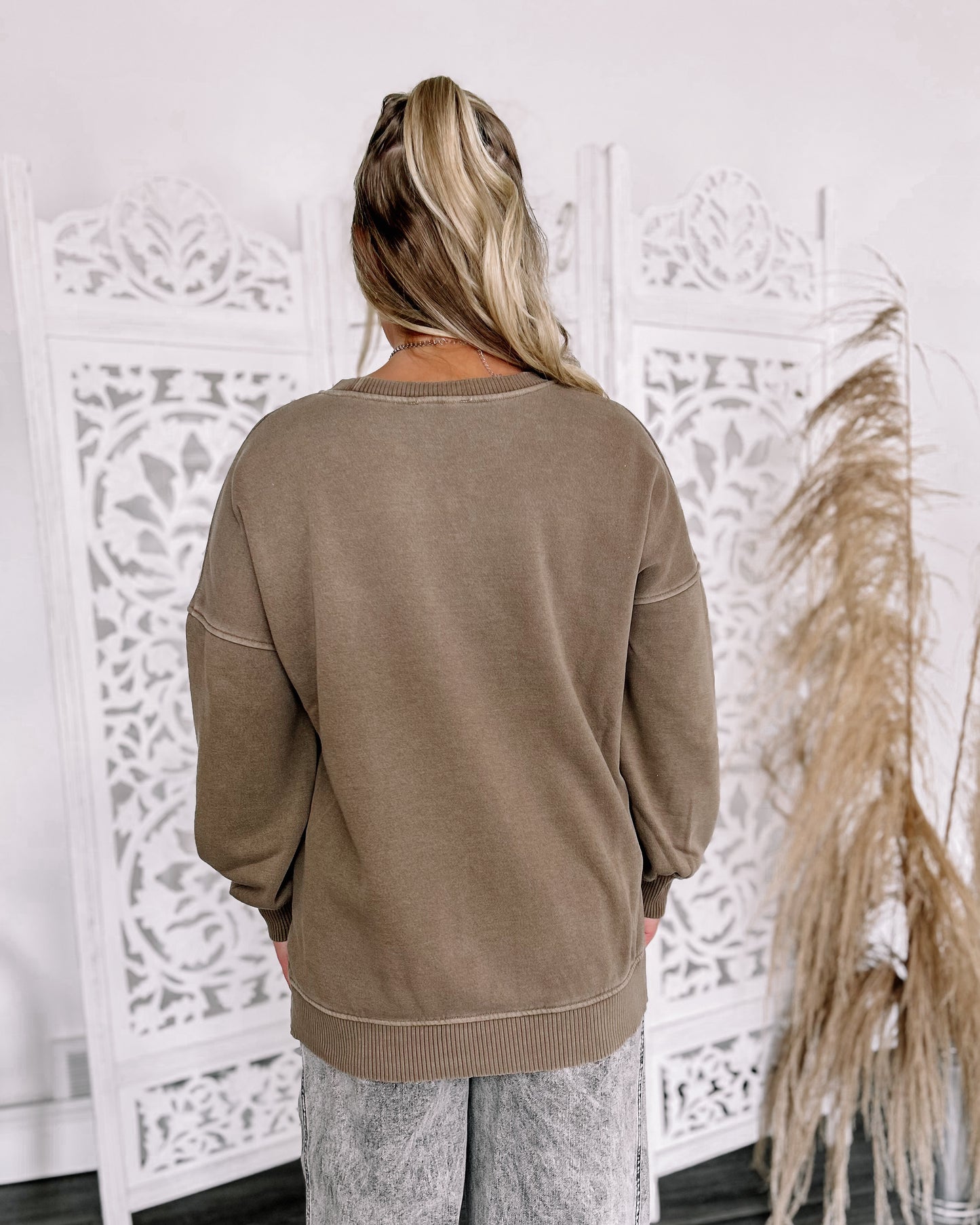 DETAILS: This cozy crewneck sweatshirt features a relaxed fit, handy pockets, and cute little side slits. Super soft and perfect for fall—your new seasonal favorite!