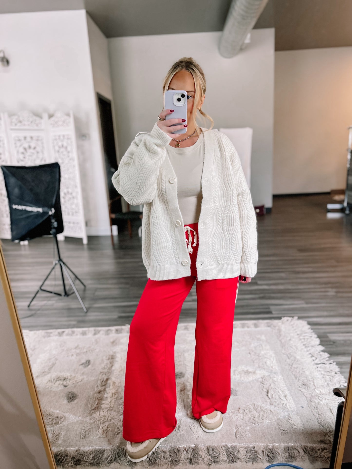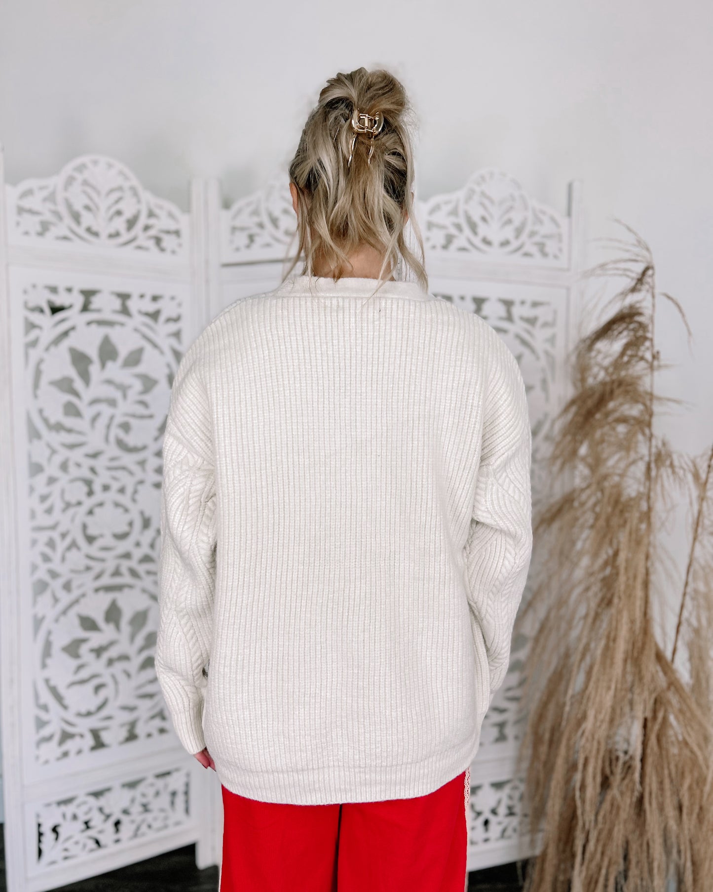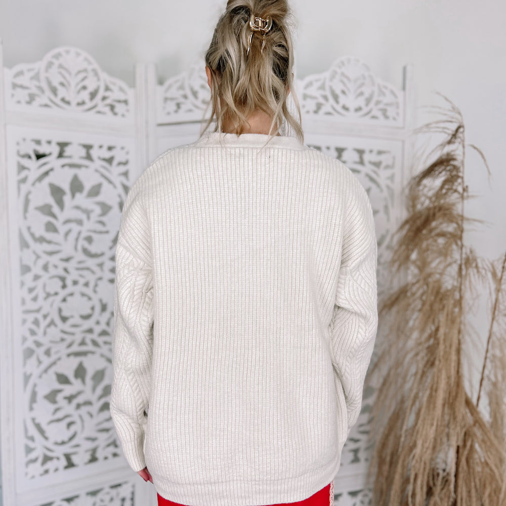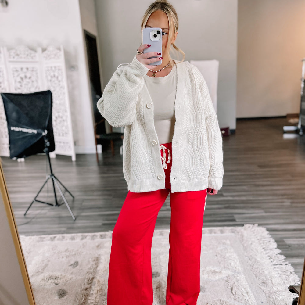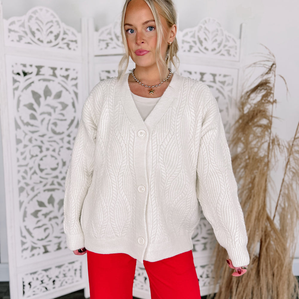 DETAILS: Wrap yourself in warmth with this charming cream cable knit cardigan featuring a snug V-neck—your new go-to cozy companion!
