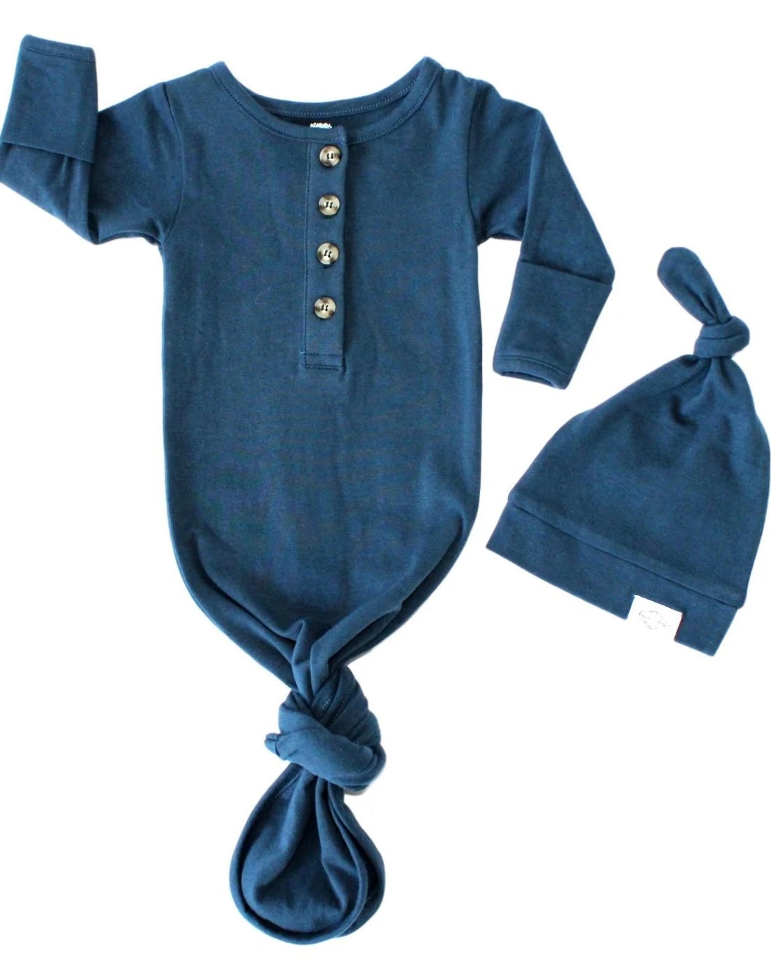 CONTENTS + COLOR: One knotted gown + top knot hat.