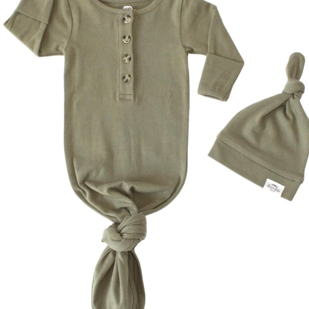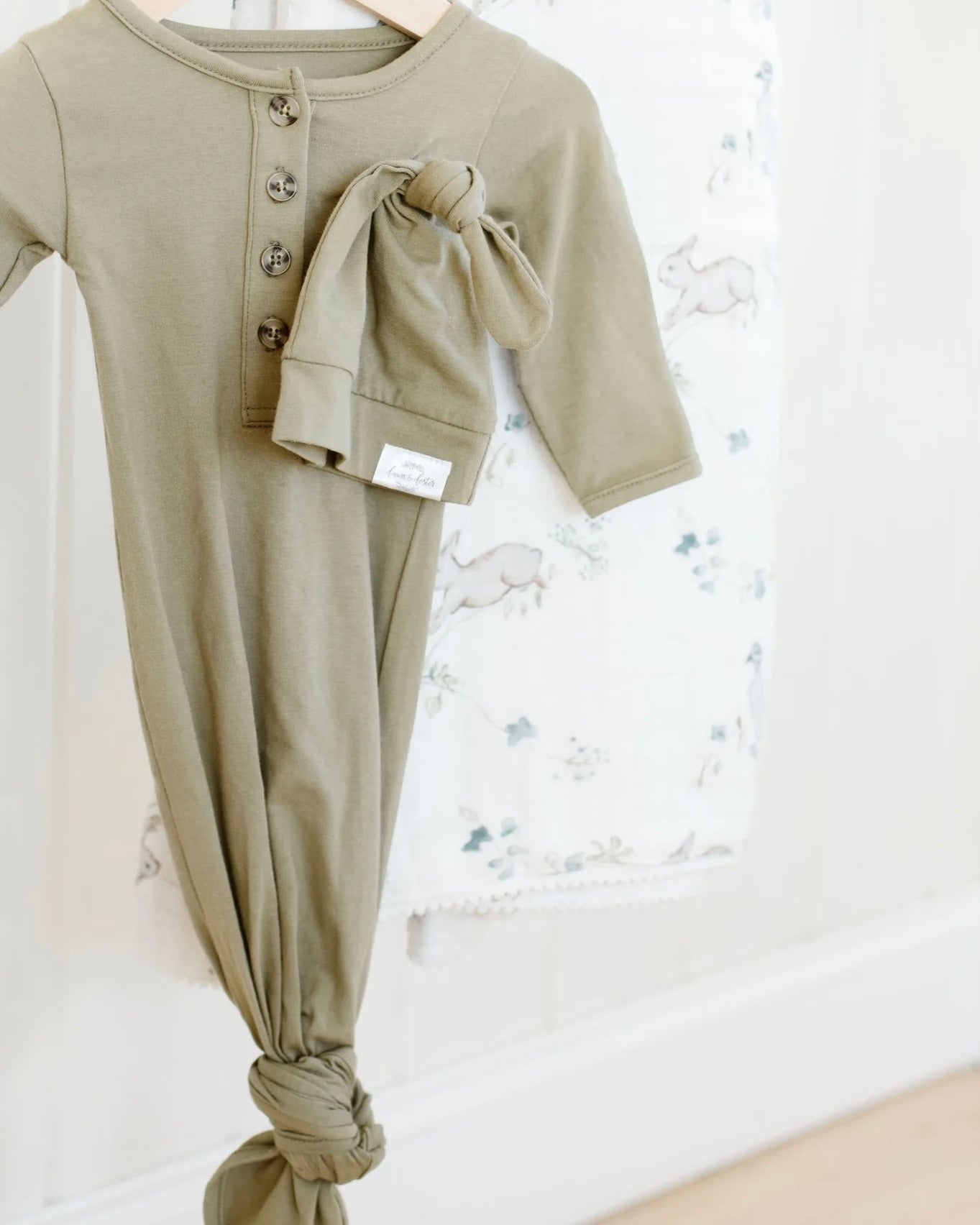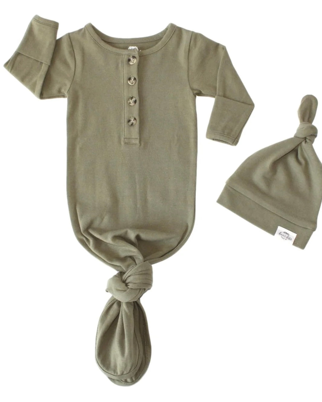 CONTENTS + COLOR: One knotted gown + top knot hat.