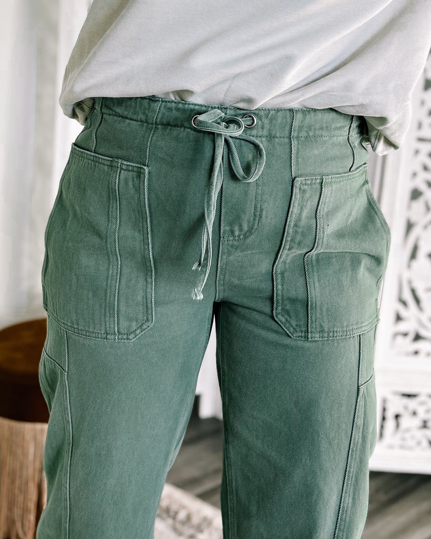DETAILS: Kick back in these laid-back string pants featuring that coveted vintage wash and a relaxed silhouette that actually lets you breathe. Complete with functional pockets because comfort shouldn't mean sacrificing storage. The perfect excuse to embrace your chill era.