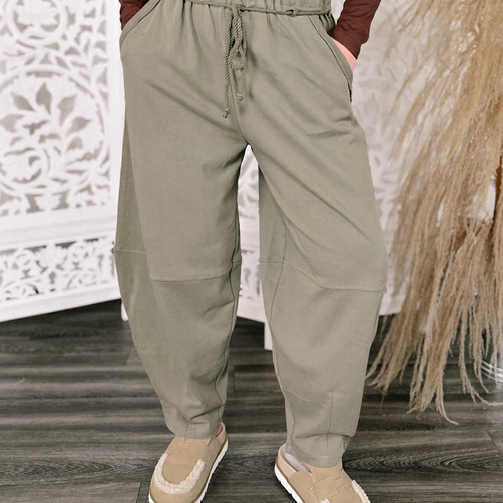 DETAILS: The Esme joggers are a cozy autumn must-have! Featuring a barrel cut, a laid-back fit, and handy pockets paired with a drawstring waist, they’re perfect for fuss-free style and comfort.