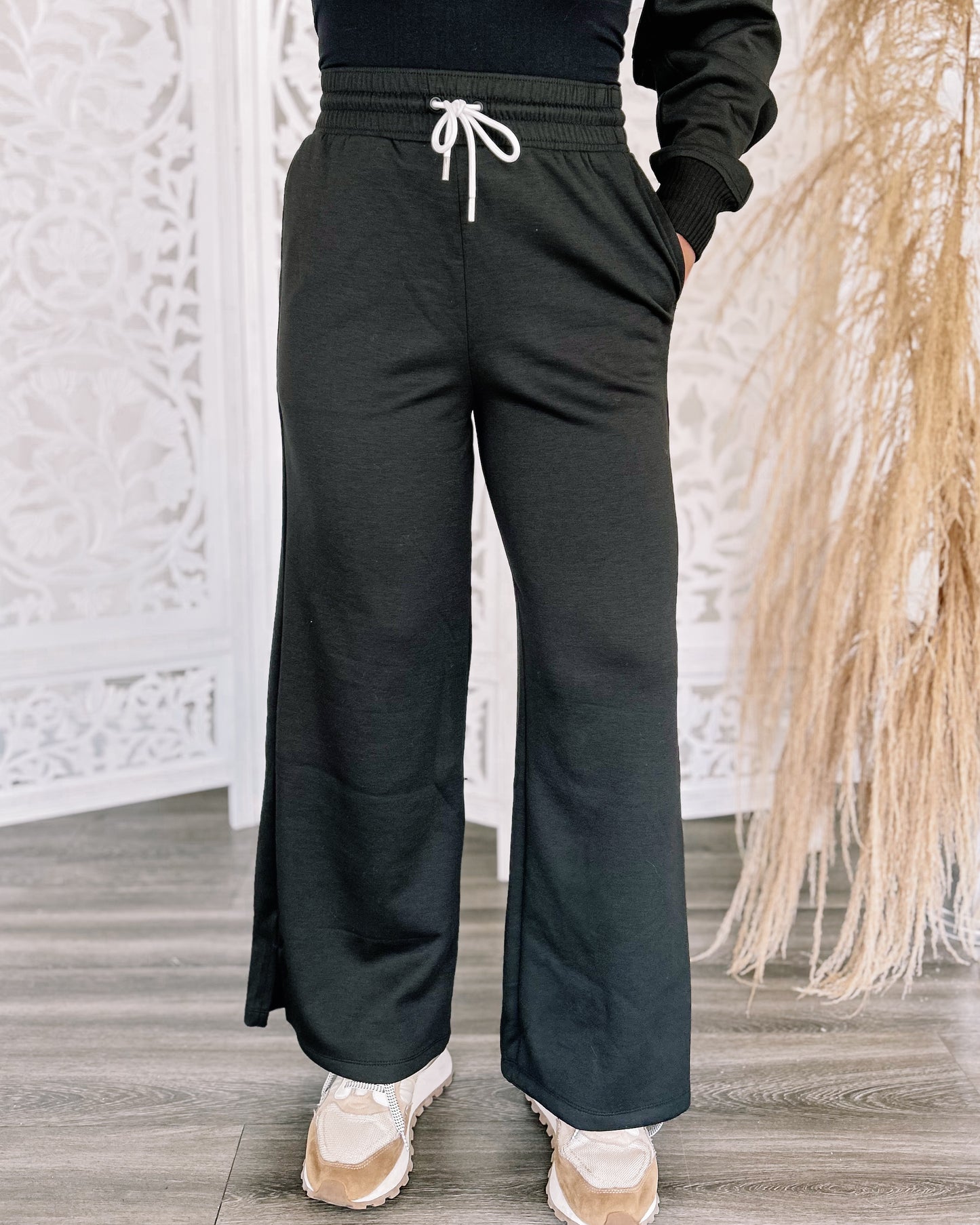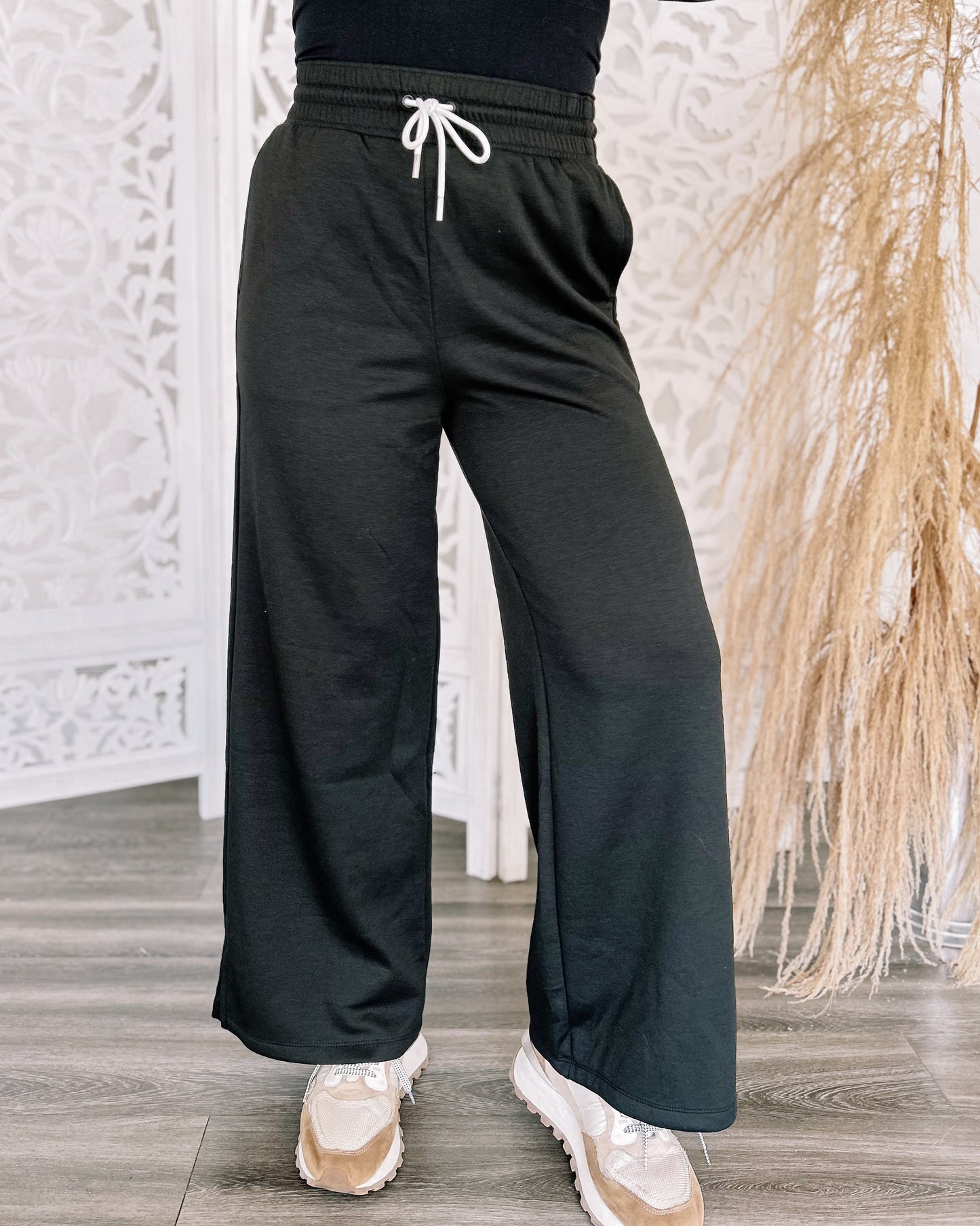DETAILS: Find your perfect match with our Lush collection! These Wide Leg Pants have you covered, lush buttery fabric that feels like a dream, convenient pockets for all your essentials, and a comfortable elastic waist plus drawstring for the perfect fit. Who says you can't have it all?